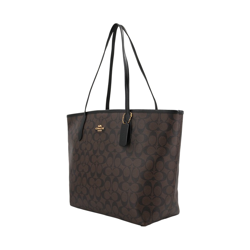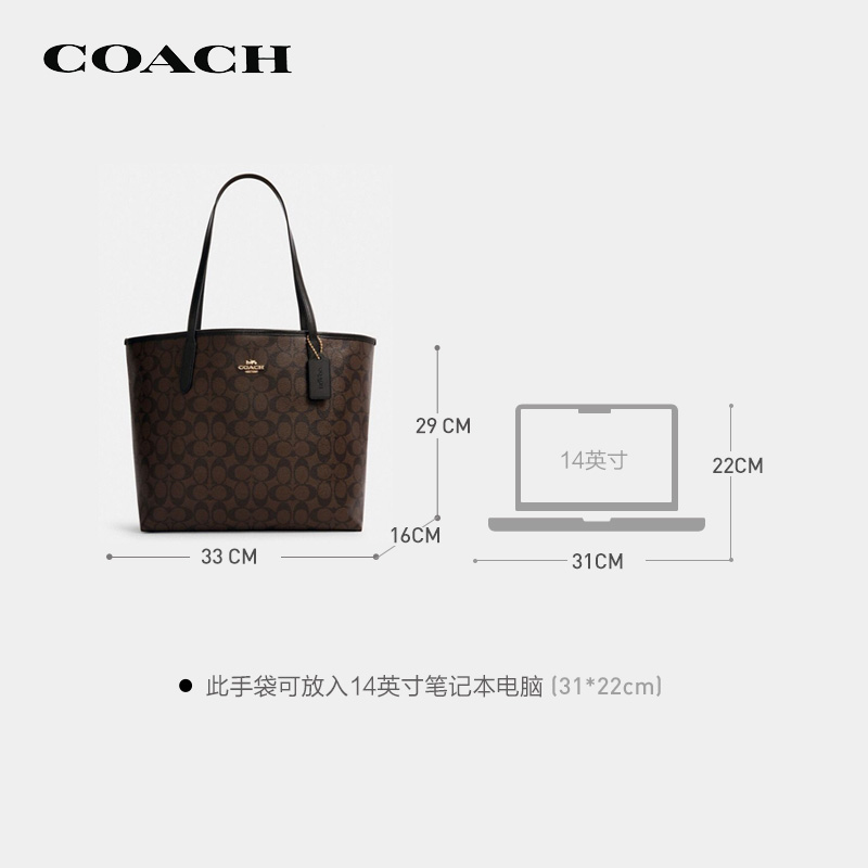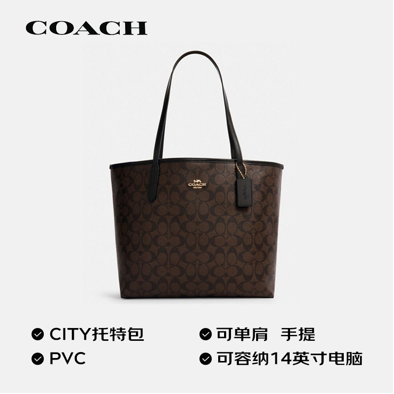 蔻驰于1941年诞生于纽约曼哈顿。其推出的这款女士托特包,选用PVC材质制作,结实耐磨易于打理。表面经典C字花纹装饰,简约又时尚。五金光泽感良好,为包包增添精致气息。磁扣的开合方式,轻松拿取包内物品。可以自由选择手提或单肩背,满足不同风格的搭配需求。
