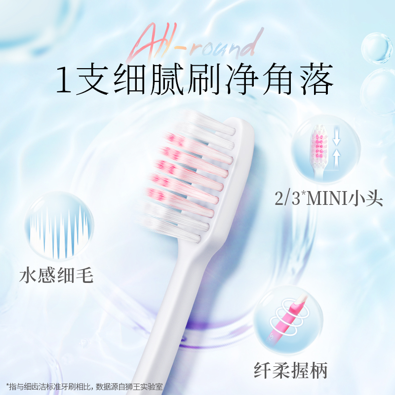 狮王的细齿洁弹力护龈软毛牙刷一直是它家的口碑产品,主要特色是毛细刷头小,0.02mm的刷毛柔软的同时非常适合清洁牙缝中的污垢,小刷头也比较容易刷到里面的牙齿,并可在一定程度上避免干呕。配合去牙渍产品效果会更好。