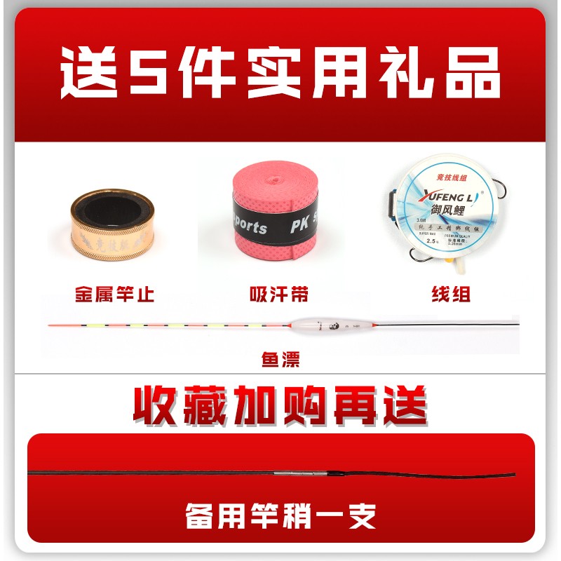 GLOWAY 光威 圣金樽 钓鱼竿,5.4米收缩长度120cm,共5节;360度旋转竿稍,有效避免缠绕,超强耐磨轴承提升寿命;强化金属前后堵,兼顾耐用;多层碳布缠绕,更加强劲;整杆券漆面,不易掉色,更加美观;28综合调性。