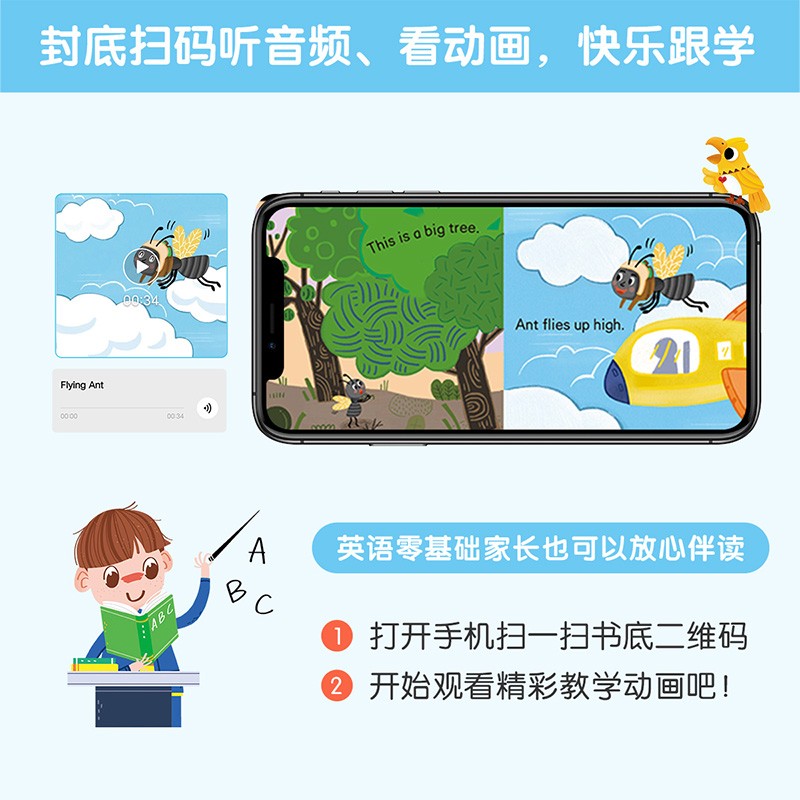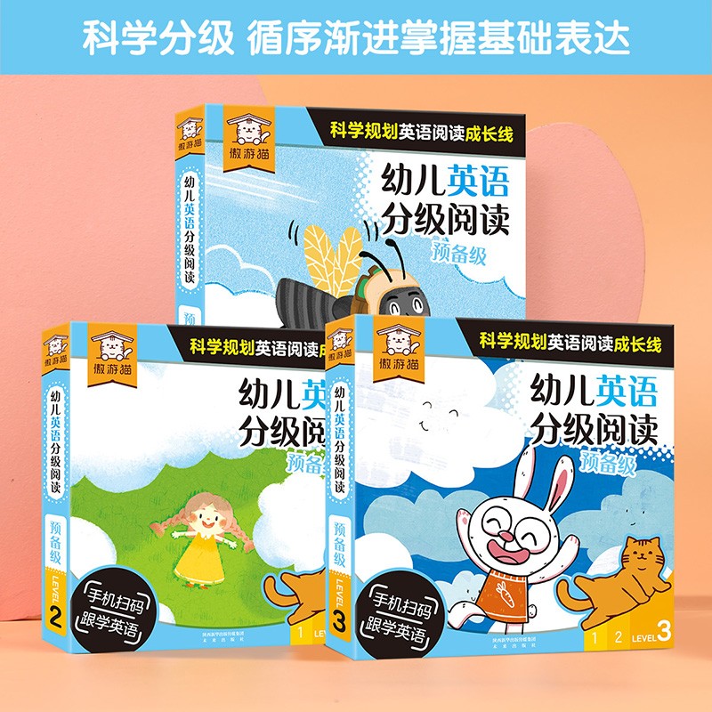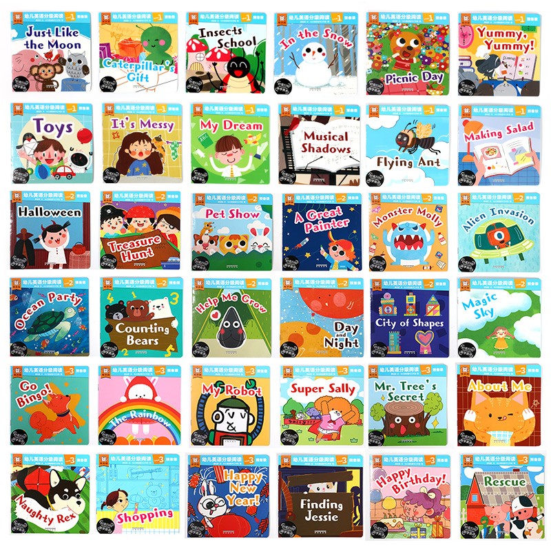 《幼儿英语分级阅读 预备级》共35册。本套书适用于2-4岁的幼儿英文启蒙学习,满足了幼儿英语的基本需求。绘本故事来源于小朋友的日常生活,包括基础认知、节日文化、生活行为等各个方面,英语启蒙与生活常识同时发展,通过阅读让孩子了解文化常识,养成良好的行为习惯。这套书场景均来自日常生活,画面轻松活泼,贴近日常生活,篇幅短小,但内容详实,让孩子学会常见事物的英语表达,甚至能用简单的语句表达自己。随书配有动画视频,小朋友自己录音,符合小朋友的说话语气,让小朋友更有代入感,也更易跟读、模仿,锻炼小朋友的口语表达能力。