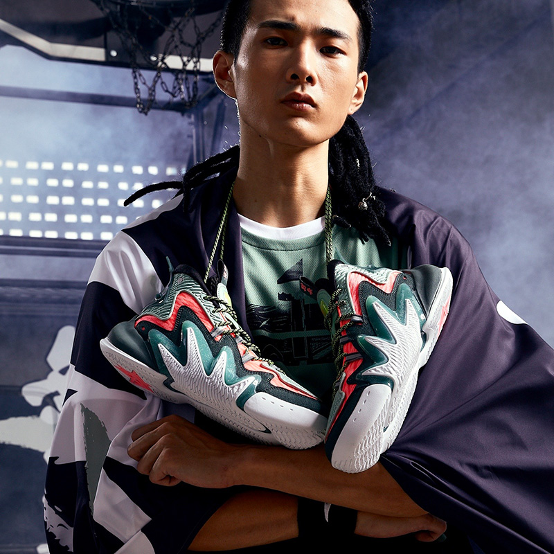 A-SHOCK3.0缓震科技,实战脚感再升级,中底采用最新A- SHOCK3.0缓震科技,提升缓震和回弹表现,带来澎湃舒适脚感,鞋身网布上有毒液“拉丝”的图案,左右鞋舌气囊上印有毒液的眼睛,极具表现张力,大底上翻设计+侧墙TPU加固,彰显个性的同时防侧翻性能加倍提升。