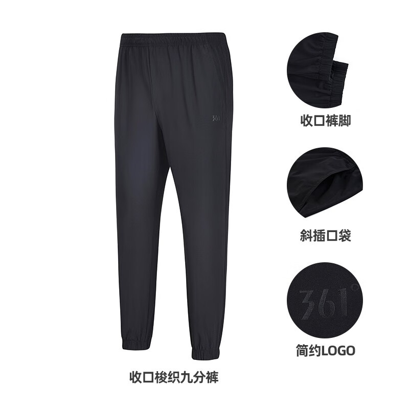 361°是361°集团旗下休闲运动品牌,成立于2003年,产品包括运动鞋,运动服,休闲配饰,童鞋,童装等。361° 651829702 男士运动长裤,采用弹力面料,九分裤版型,松紧脚口,两侧配有口袋。