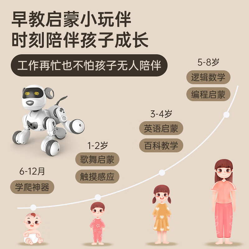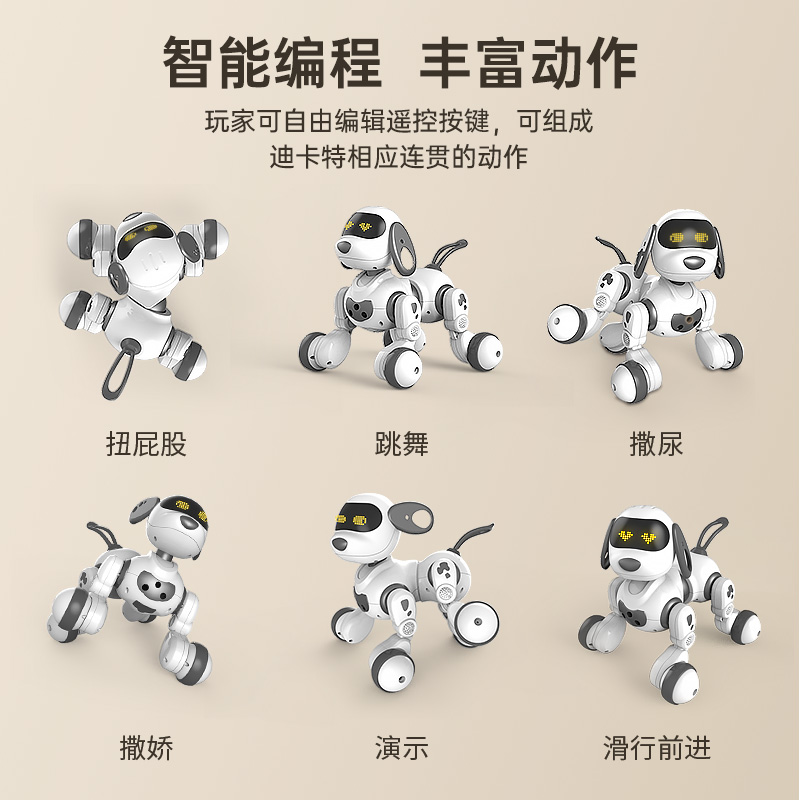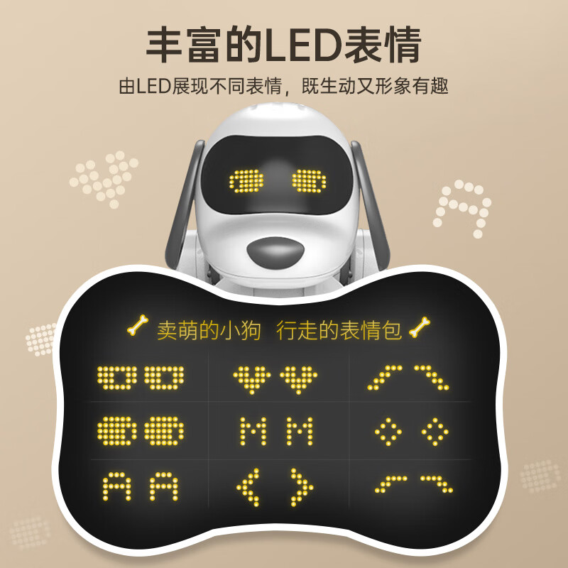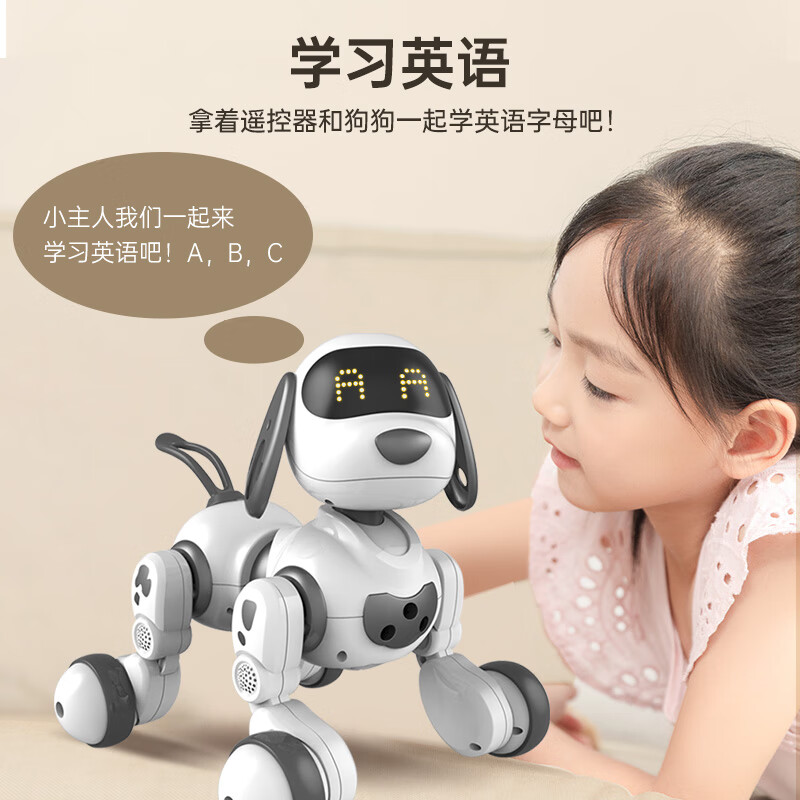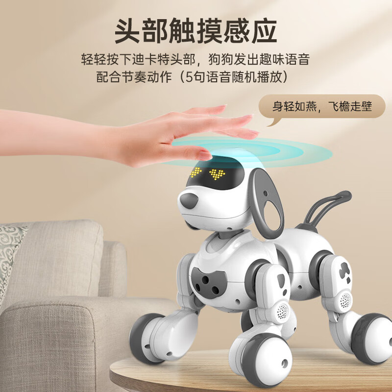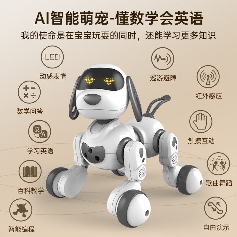 盈佳(AMWELL)这款智能遥控机器狗,内置红外感应系统,通过手势控制狗狗前进、后退、左转和右转,操作简单方便。巡游避障设计,巡游过程中可自动避开障碍物,重新规划路线巡游。搭配遥控器使用,可自由编辑遥控按键,组成机器狗相应连贯的动作,可玩性高。适合年龄在3岁以上的人士。