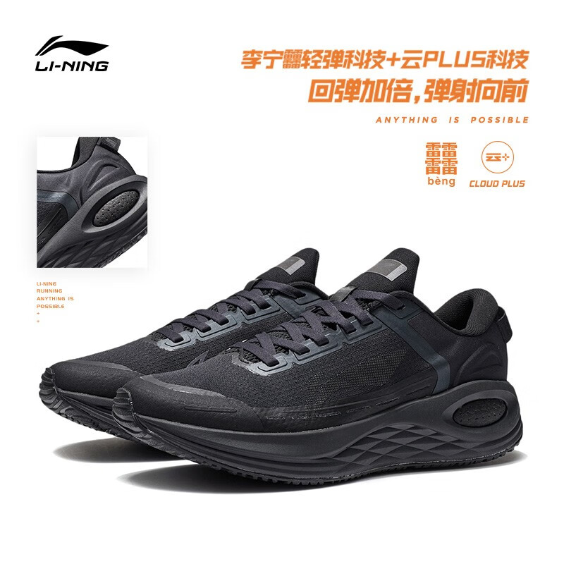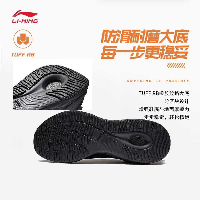 中底搭载李宁䨻轻弹科技,与升级的云PLUS科技,降低底部重量,提升回弹性能,带来跑动时的软弹脚感,轻弹震撼,颠覆想象。TUFF RB橡胶纹路大底,分区块设计,增强鞋底与地面摩擦力,步步稳定,轻松畅跑。鞋面采用纺织品+TPU材质,柔软舒适,给予脚掌更多空间,TPU加持,鞋子不易变形,让跑者更专注于流畅迈步。
