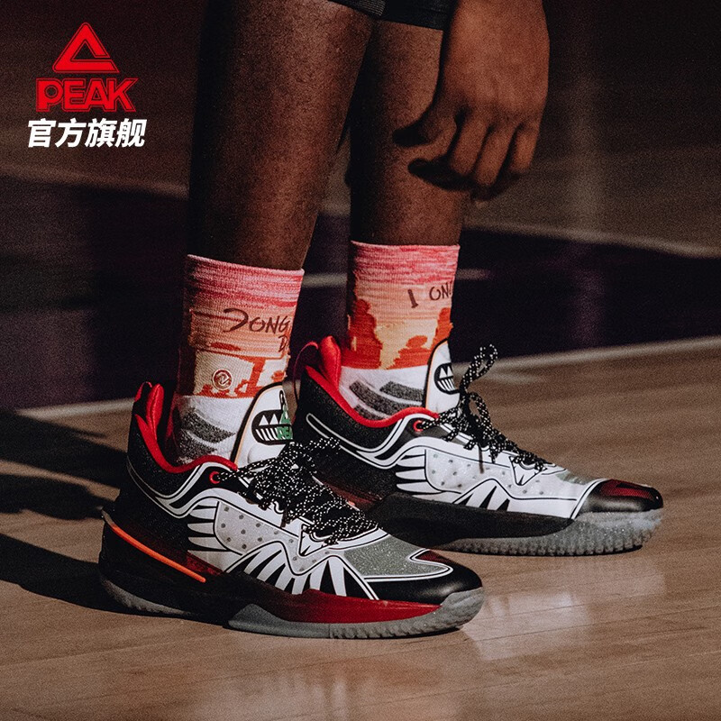 PEAK 匹克 态极 闪现3代 风筝 E14903A 男子篮球鞋,鞋面两侧支撑融入“沙燕’风筝的翅膀与燕尾羽毛形状,轻盈如燕,如两翼稳定支撑。鞋舌印有风筝圏案,结合后跟祥云元素,点名主題身价,映射凡筝飞翔于祥瑞之上。闪现3代全新鞋楦,告别“肥大、臃肿”,轮廓精致千练紧致贴合包裹,场上场下漂亮过人。创新采用一模双密”注入式中底,前掌红色区域呼应魔弹急速启动,逐渐过渡后掌轻量化态极缓震。全新改良中底Y字形碳板,轻质、耐用、科学,有效过渡前后掌受力,保证后跟落地稳定性。轻量化鞋身处理+中底“一模双密"缓震科技,高性能网布配合PP膜设计,轻质耐久,兼顾透气支撑。