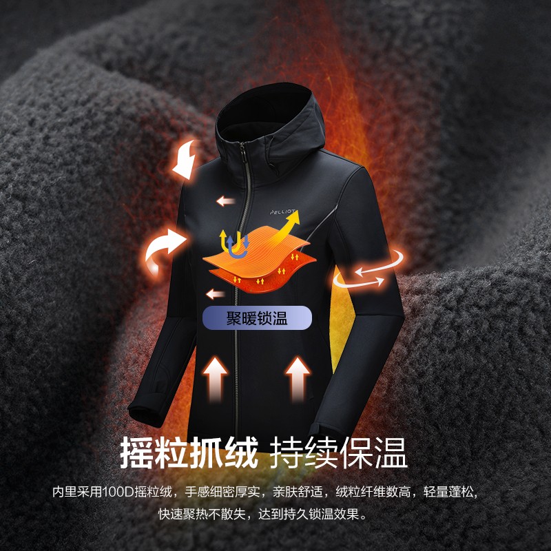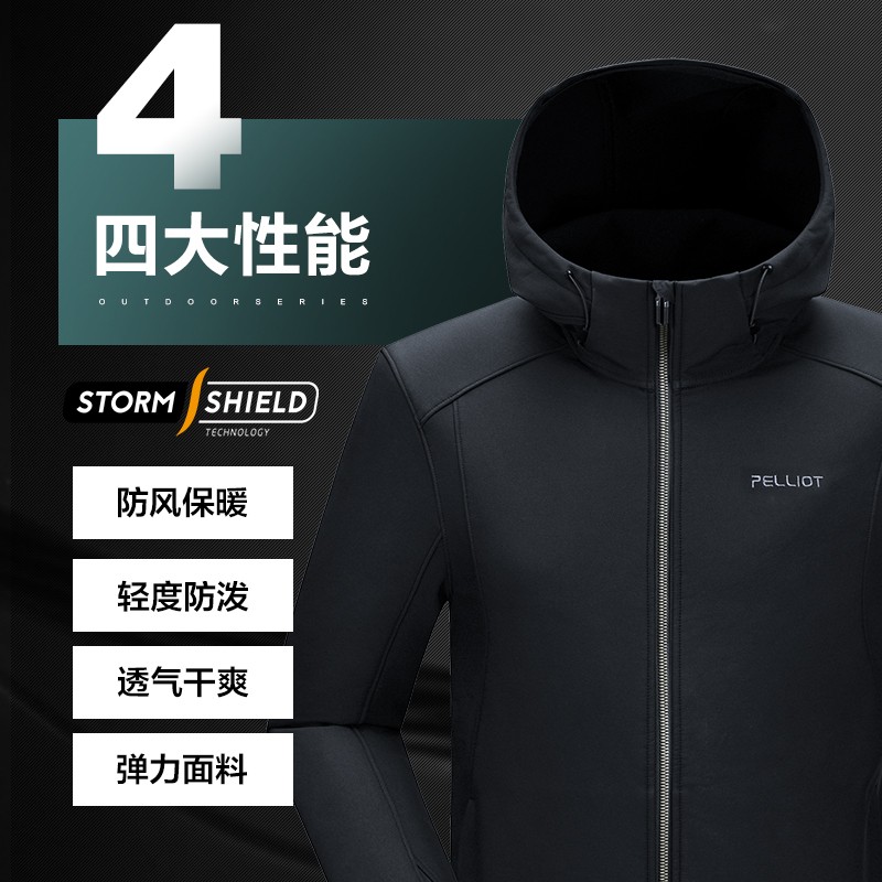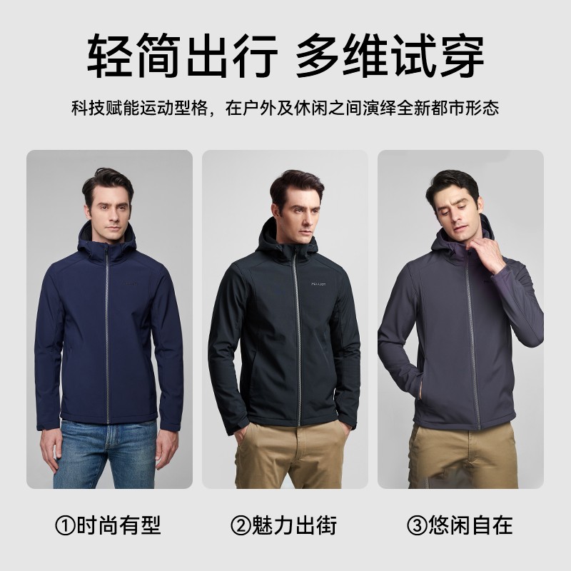 伯希和 男/女款软壳外套 ,采用科技防风面料,内里100D摇粒绒,舒适保暖,轻度防泼水设计,立体剪裁,修身物拘束。