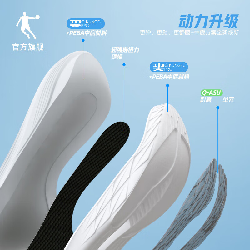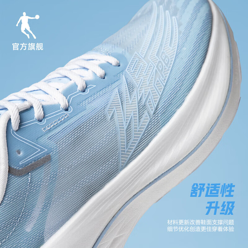 填腹式结构的中底设计,优化了中间碳板的弧度结构,碳板的宽度更宽,动能回弹提升85%。跑步经济提升3.5%,碳板刚性提升18%,让中底发泡可以更加均匀的受力。