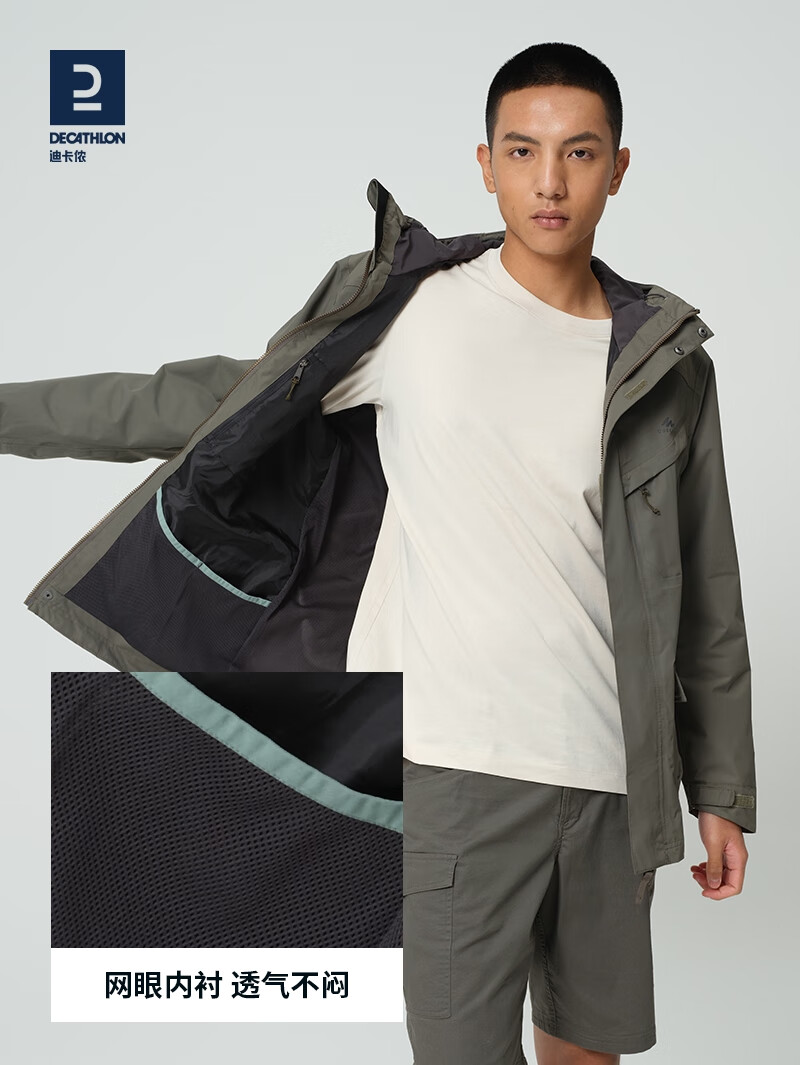 DECATHLON 迪卡侬 8384377 男款单层冲锋衣,修身版型设计,防风防水,运动休闲,耐磨透气,舒适好穿,日常也很百搭。