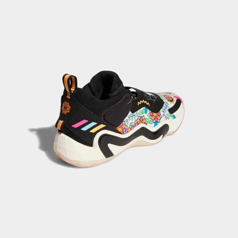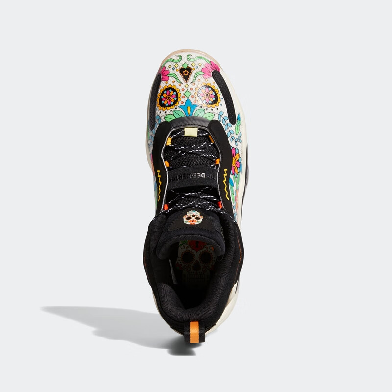 来自adidas Basketball,致敬墨西哥亡灵节和其背后的意义。采用织物鞋面,缀亮丽生动的骷髅、花朵和蜘蛛网图案,呈现出亡灵节的风格。中底搭载Lightstrike技术,半透明橡胶外底缀"Day of theDead"亡灵节主题图案。