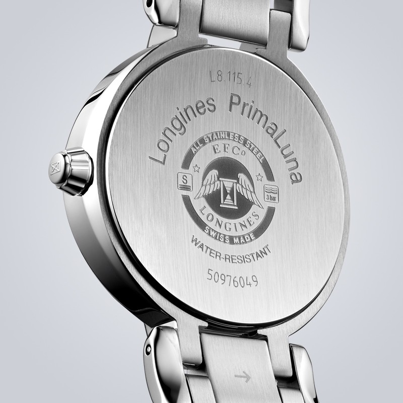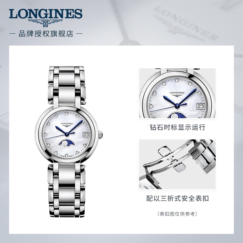 浪琴(LONGINES)推出的这款30.5毫米腕表,搭载石英机芯,走时稳定。具有3BAR防水性能,满足日常防水需求。采用合成蓝宝石表镜,耐磨损且通透性好,读时清晰。白色圆形表盘配有钻石时标和蓝刚指针,简约大气。