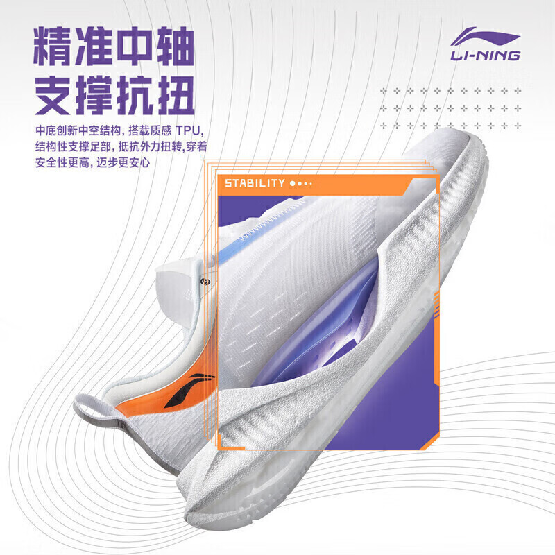 中底方面采用全新䨻科技+创新中空结构,使超轻19的回弹提升8.4% ,整体重量减少5%,同时搭载质感TPU结构性支撑足部,能够有效抵抗外扭转力。