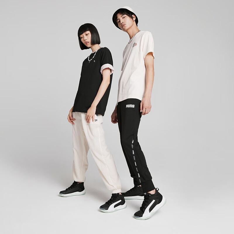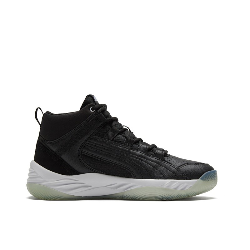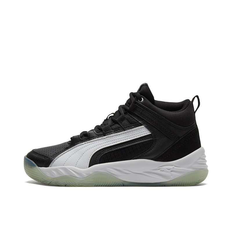 面材质选自人造革/织物,柔软舒适,轻盈透气。鞋底选自防滑耐磨,轻量缓震橡胶底。系带设计,高帮鞋帮。