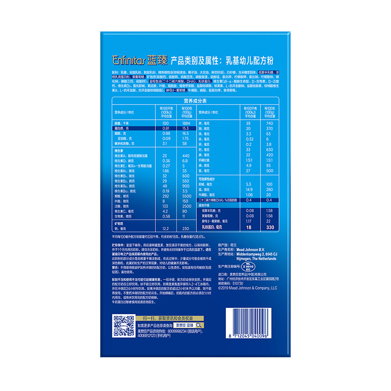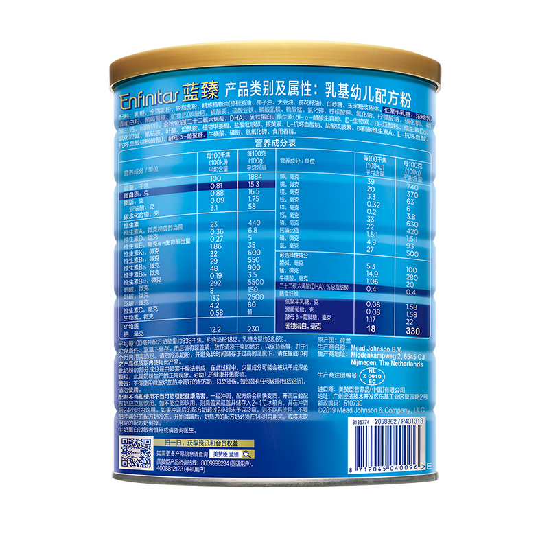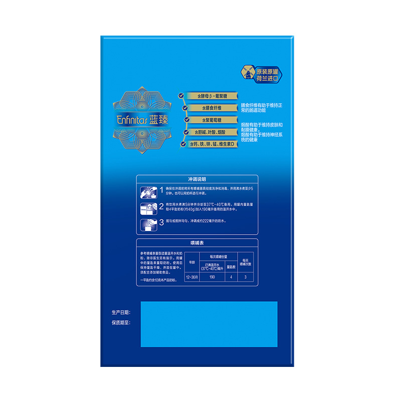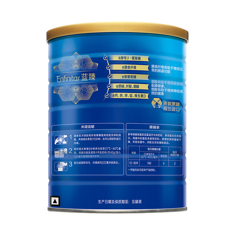 蓝臻,是美赞臣集团旗下的的高端奶粉,因奶源优质和20倍乳铁蛋白的优点,价位稍高。市面上有国行版、港版、美版,国行版蓝臻的奶源来自荷兰。对比美赞臣其他款奶粉,蓝臻以高含量的20倍乳铁蛋白为宝宝的健康成长保驾护航,每100g奶粉乳铁蛋白含量高达330mg,冲调后600mg/L,贴合宝宝天生需求。含有独特的短链+长链独特益生元组合,能够全面保护宝宝的肠道,增强宝宝自护力。此外,乳铁蛋白还与蓝臻中独特的益生元组合相互结合,配合PDX+GOS益菌素组合,双重助力宝宝的健康,让宝宝消化吸收更好,排便软且轻松。MFGM与DHA双重脑动力营养组合,可提升2倍脑洞力,研究发现:MFGM(乳脂球膜)对于婴幼儿的神经发育、代谢调节、抗感染等都具有重要作用,DHA就是咱们俗称的脑黄金,是大脑和视网膜的重要构成成分,对宝宝的智力和视力发展相当重要,这二者联手,双重功效支持脑细胞连接,帮助大脑发育。