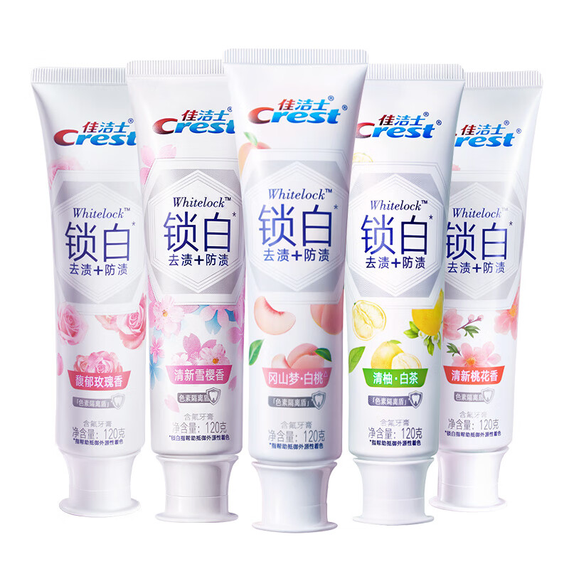 Crest佳洁士3D炫白牙膏一直有着很好的口碑,近期全新推出的锁白系列的致尚技术牙膏,提出了全新的牙齿美白理念,采用了宝洁研发的“锁白”成分,附着牙齿表面形成保护伞,既清洁牙齿污垢,又能一定程度抵御日常的食物染色。同时,选择了全新的花香口味,让清甜沁脾的香味在口中蔓延,增加刷牙时的舒适感,持久清新口气,晶莹透亮的膏体演值颇高。