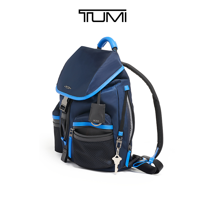 这款TUMI 途明 Voyageur系列 女士双肩背 0196460GLB,采用尼龙材质,结实耐用,冰蓝色搭配亮蓝色设计,绳索网眼细节点缀,精致美观。侧边拉链进入主隔层,方便拿取物品,内置电脑隔层,贴心保护贵重物品,包内设有钥匙挂绳,方便贴心。内部防水口袋,可放置雨伞、水瓶等。