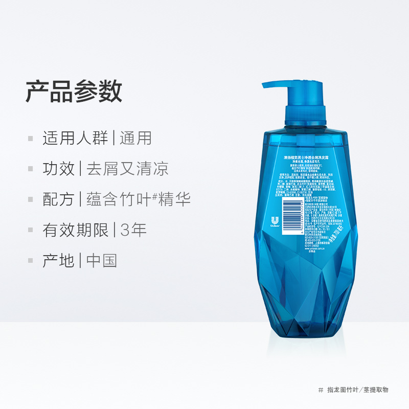 CLEAR清扬是联合利华旗下专为男士打造的洗发护发品牌,于2007年于中国上市,品牌主打去屑,改善头皮健康状况。这款男士净透去屑洗发露,来自清扬的高端植萃系列,无硅油配方,采用Micellar微米净透技术带走多余的油脂和污垢,富含瑞士竹叶精华,头皮清凉,发丝清爽,持久控油,草本调香,香气清新稳重。