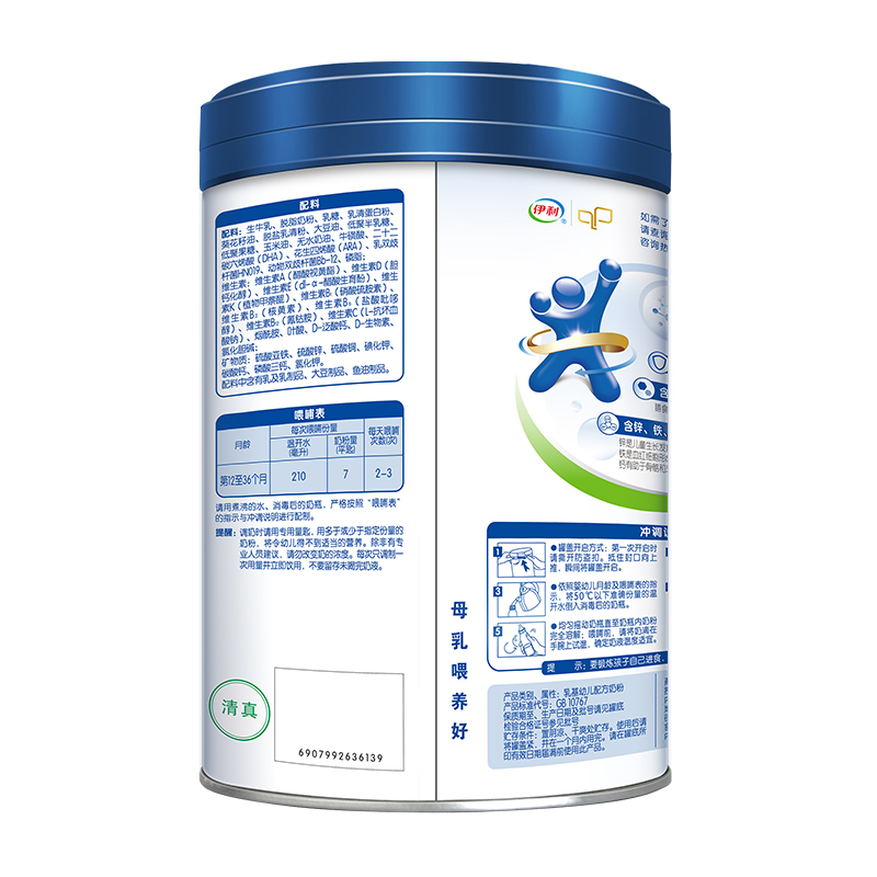 伊利(yili)国内外知名的乳制品品牌,成立于1993年。其推出的这款奶粉,富含蛋白质、维生素、矿物质等多种营养成分,可满足孩子生长所需营养。其中GOS和FOS益生元组合,能促进营养消化吸收,改善肠道菌群和降低便秘几率;胆碱和牛磺酸可促进脑发育和提高记忆能力,钙及脂类物质的消化吸收。