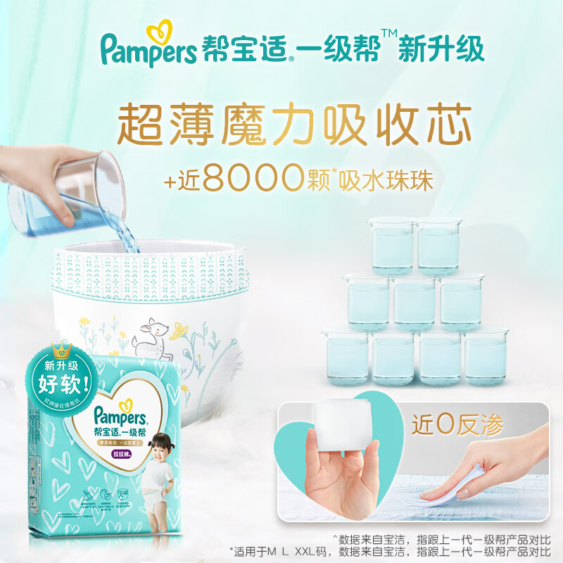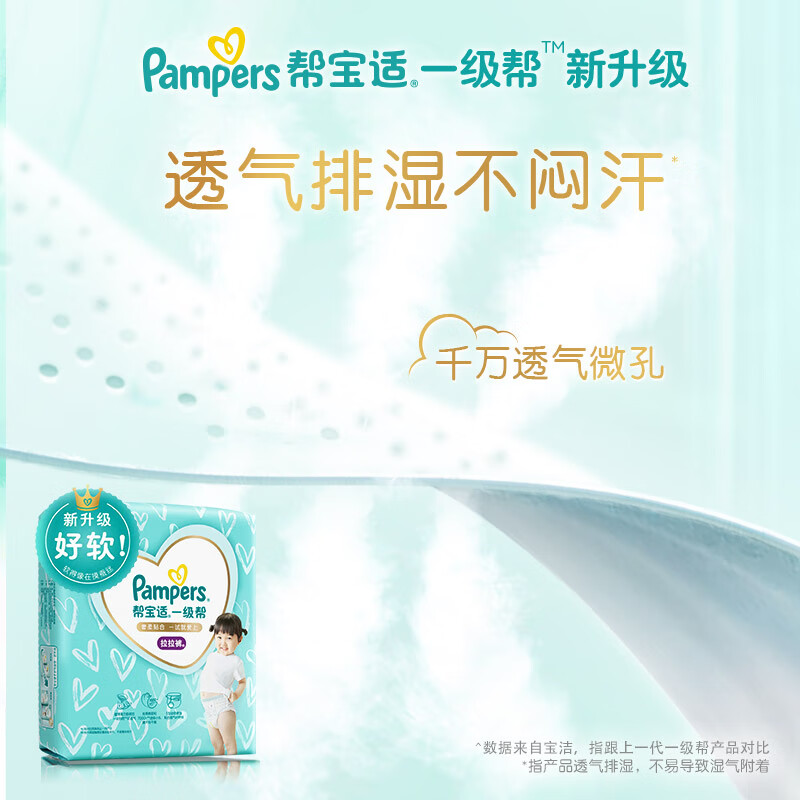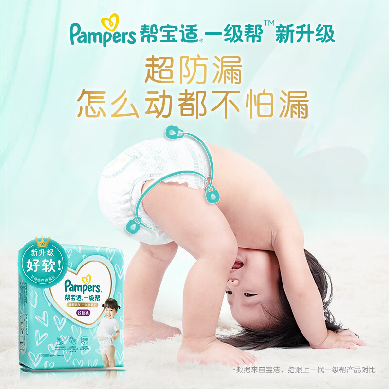Pampers帮宝适是宝洁旗下婴儿用品品牌。此款一级帮宝适为妈妈们公认好用的纸尿裤,拥有360°透气内外表层,轻薄透气,3D瞬吸孔内表层,可以快速隔离稀便,保证宝宝屁屁干爽,清晰的尿湿显示,何时更换尿布一目了然,此款适合12kg以上宝宝使用。