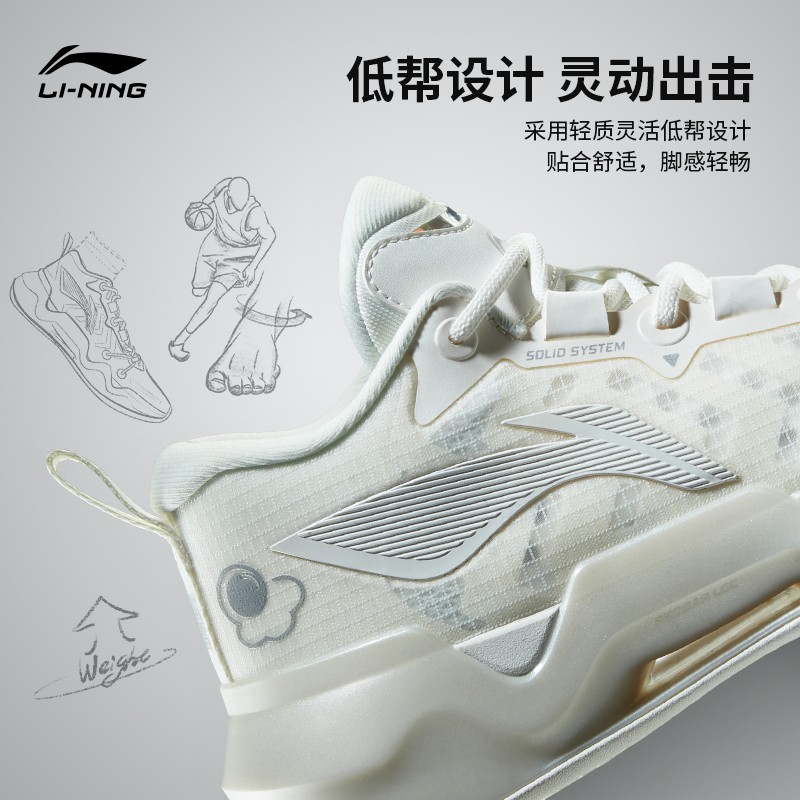 足弓稳定科技,搭配前掌动态飞线穿绳与鞋面束紧系统,从鞋底到帮面多维度协同支撑提供稳定性,防伤抗扭,安全性能大幅提升。采用轻质灵活低帮设计,贴合舒适,脚感轻畅,实战动作更加挥洒自如。前掌搭载李宁靄轻弹科技,助力灵敏启动响应,能量回馈澎湃,增加向前助推力。LIGHT FOAM缓震科技,有效缓震,利落回弹脚感轻质舒适。