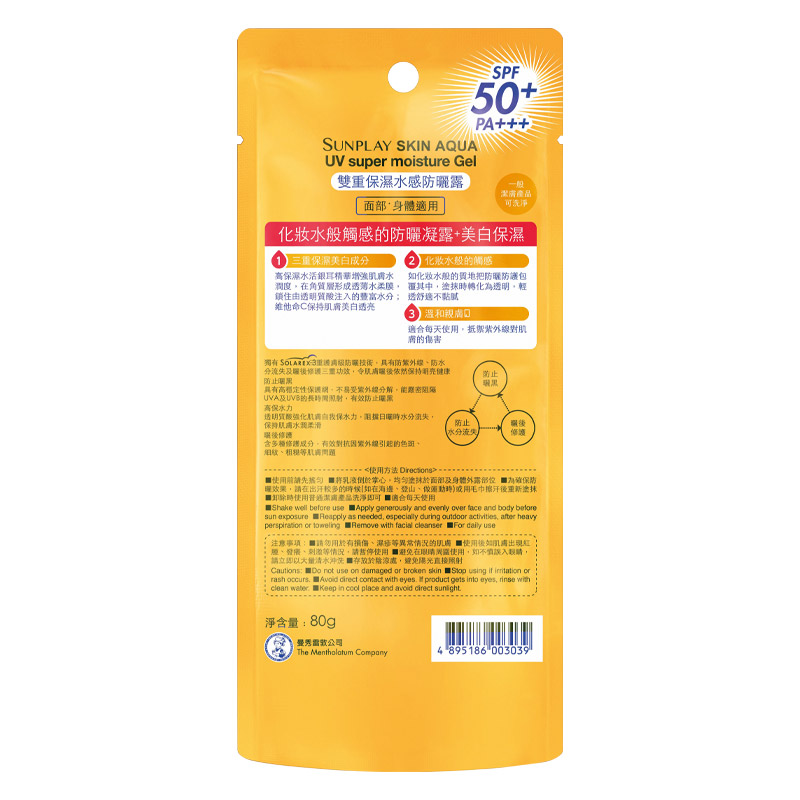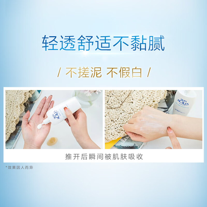 Mentholatum曼秀雷敦是国内知名度超高的平价护肤品牌,这款Mentholatum 曼秀雷敦 新碧双重保湿水感防晒露,采用了solarex-3三重护肤级防晒技术,具有防紫外线、防止晒伤及晒后修护三重功效,防晒指数高、波段全,不会厚重、拔干,大量涂抹时脸部的泛白度也很轻微。颜色微黄,有着水润感的乳液质地,添加了纳米透明质酸、水活银耳精华、维C,上脸能感受到保湿度,防止日晒造成的水分流失,缓解黑色素形成,减淡色斑及痘印,非常适合混干皮、中性皮、干性皮使用,也适合身体防晒。