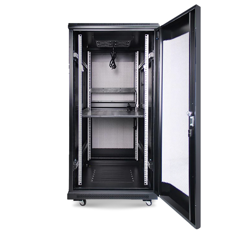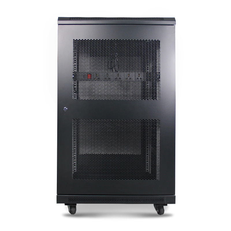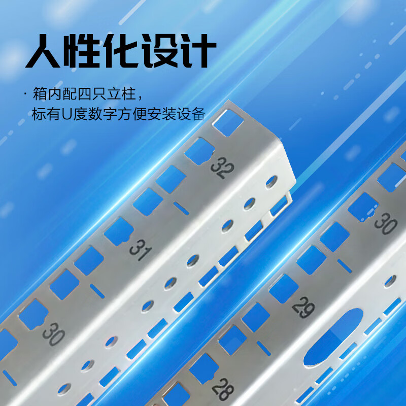 该机柜采用冷轧钢板,适用范围广,稳定可靠,耐腐蚀防辐射。机顶配散热风扇,有效降温。前后采用六角网孔门,方便设备降温。机柜顶部以及底部均设计布线口,方便拆卸后布线便携排线。箱内配四只立柱标有U度数字方便安装设备。还可安装交换机,路由器,适配架,KVM,UPS电源,服务器等网络设备。机柜尺寸:600×600×1000mm,立柜孔距:470mm。