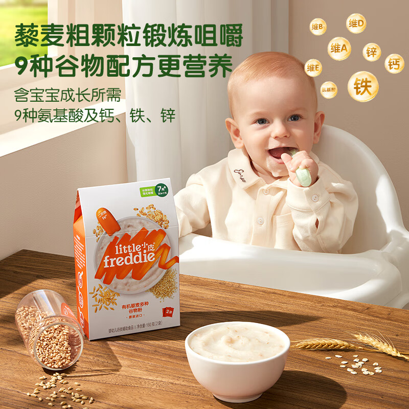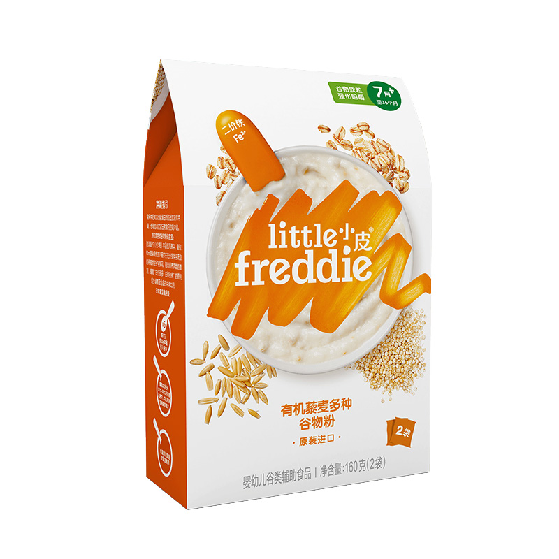 小皮是由Buck家族创办的英国有机婴童食品品牌,于2015年进入中国,产品包括辅食泥、婴幼儿高铁米粉、婴幼儿面条 、零食等,全线产品均由欧洲原装进口,专业营养搭配,拒绝多余添加。这款有机米粉选用意大利·波河三角洲有机大米原料,安全健康,远离重金属,根据不同宝宝月龄添加多种食材,宝宝好吞咽,配方中添加更易吸收的二价铁Fe2+,提高了铁的吸收率,不添加植物油、白砂糖、淀粉、果糖,不给宝宝肠胃增加多余负担。