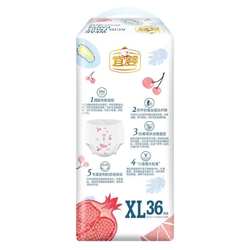 小内裤薄度仅有0.2mm,它的PH值、薄度、亲肤性、、腰围弹力、透气性、吸速、抗反渗能力都通过测评达到最佳,还不起坨不断层,更不含荧光剂,弱酸防红臀,3D葡萄状面层,大大减少宝宝和尿液的接触时间,小蛮腰大肚量,秒速吸收,尽量释放,保持干爽。