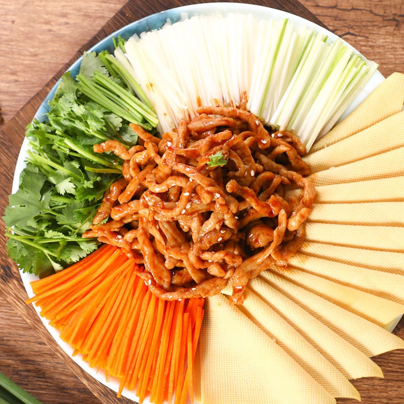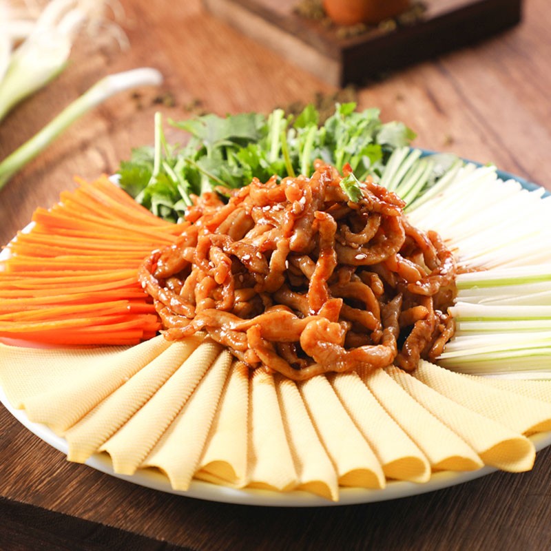 石家庄市惠康食品有限公司,成立于1993年,旗下有“谷言”、“捷百味”、“谷言牧场”、“嗨饭师”等品牌,拥有谷言料理包、谷言家宴菜系列产品以及谷言牧场和牛肉、皇冠整切牛排、自热产品、速食等八大系列,150多个产品。这款京酱肉丝选用优质猪后腿肉,对肉丝进行滚揉,提高肉丝口感及断面效果,使其肉丝更鲜嫩爽滑,加上古法制作的豆皮,口感丰富,层次分明。规格:340g。
