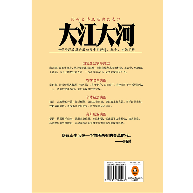 《大江大河四部曲》是阿耐的作品,被誉为“描写中国改革开放的奇书”,荣获“五个一工程” 奖。同名改编电视剧《大江大河》正在热映,王凯、杨烁、董子健、童瑶主演,收获好评无数。
