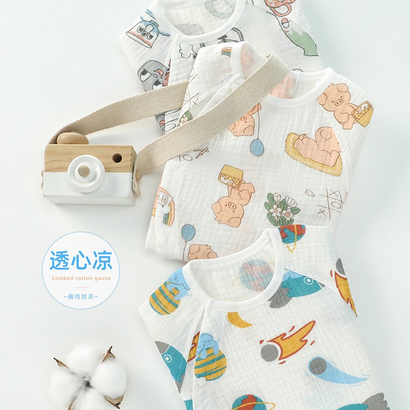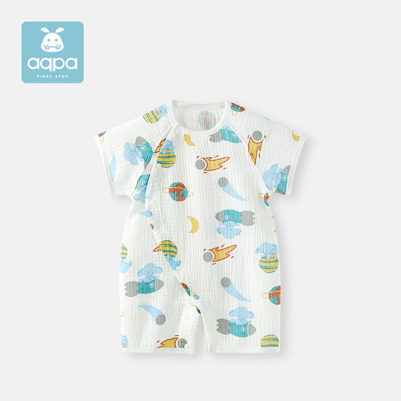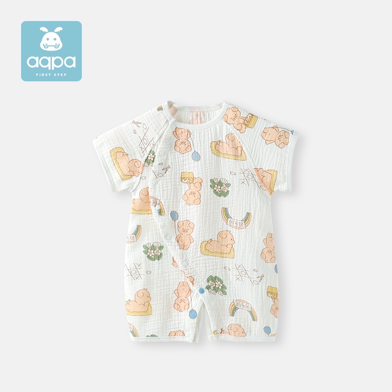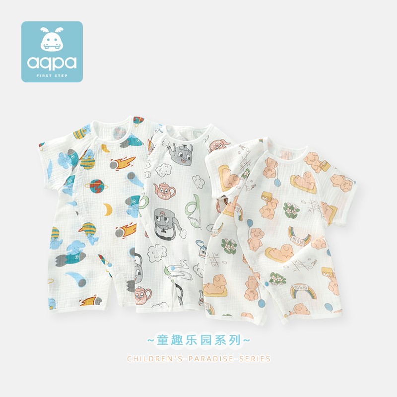 aqpa 婴儿薄款连体衣,透气舒爽,吸湿排汗,清凉薄透,柔软亲肤。吸水更快,快速清爽整个夏天。棉感更柔顺,绒绒的天然舒适感。