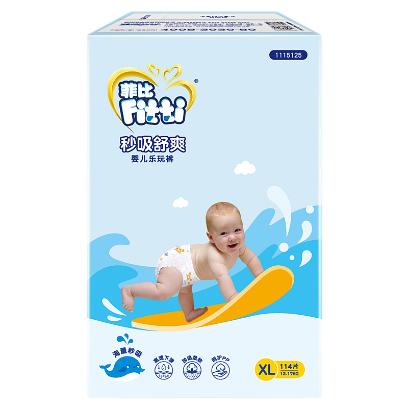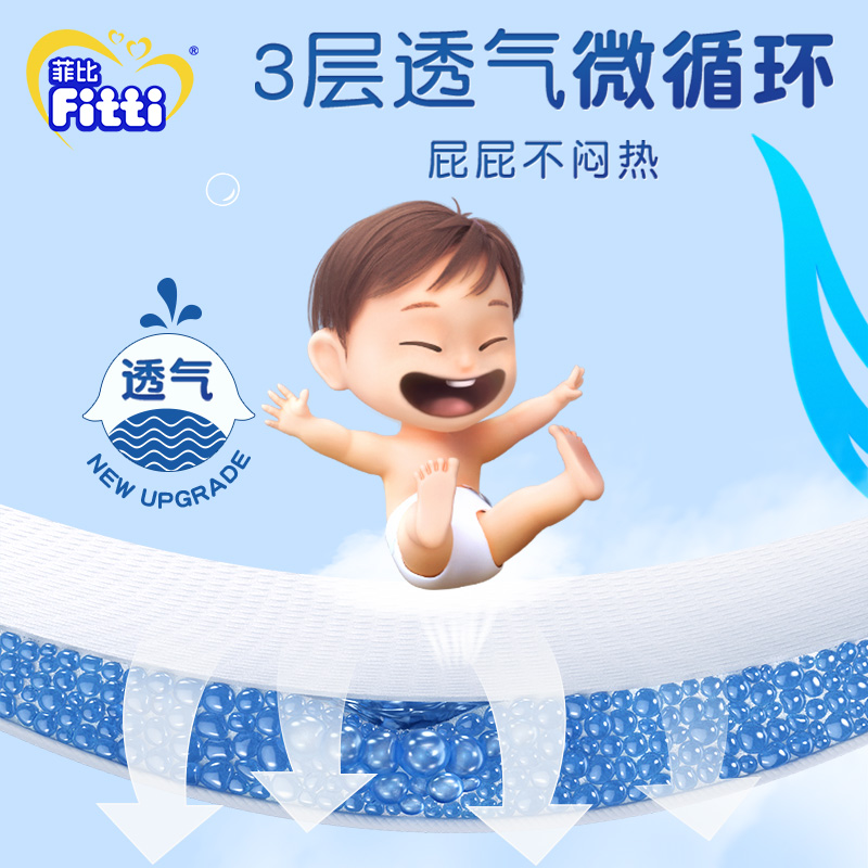 菲比纸尿裤性价比不错,这款锁水效果特别好,宝宝使用时干爽透气。柔软弹力魔术搭扣,透气性很好,加宽弹性腰围。双向透气,柔软更舒适。