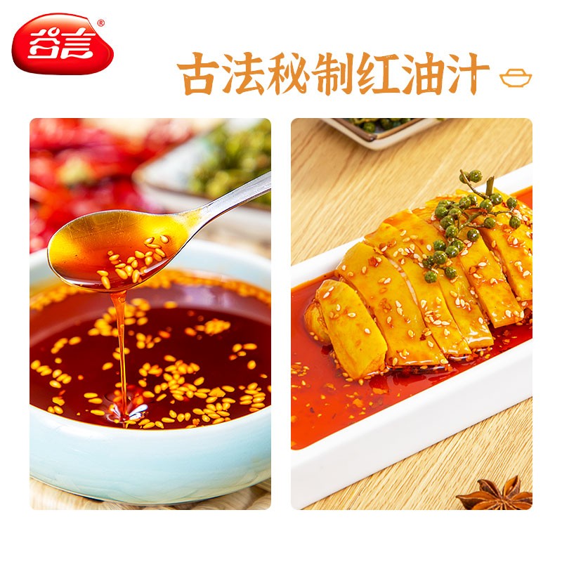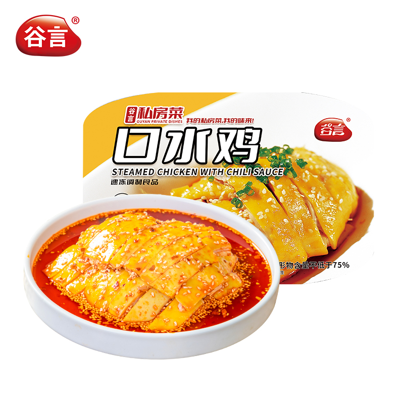 石家庄市惠康食品有限公司,成立于1993年,旗下有“谷言”、“捷百味”、“谷言牧场”、“嗨饭师”等品牌,拥有谷言料理包、谷言家宴菜系列产品以及谷言牧场和牛肉、皇冠整切牛排、自热产品、速食等八大系列,150多个产品。这款口水鸡精选肉源,并搭配上谷言秘笈之一的红油汁,以多种香辛料为基料,选用10多种香辛料,以独特配方调制而成,匠心调制而成。规格:200g。