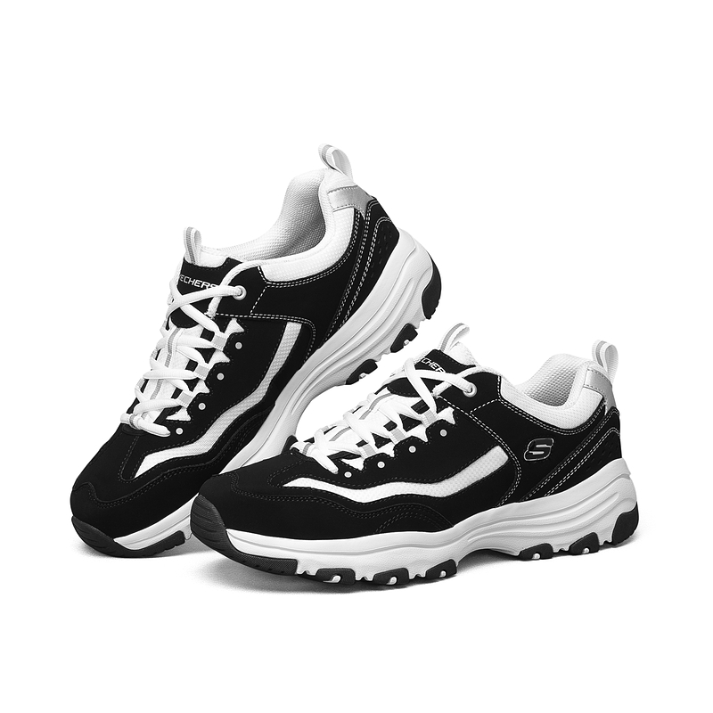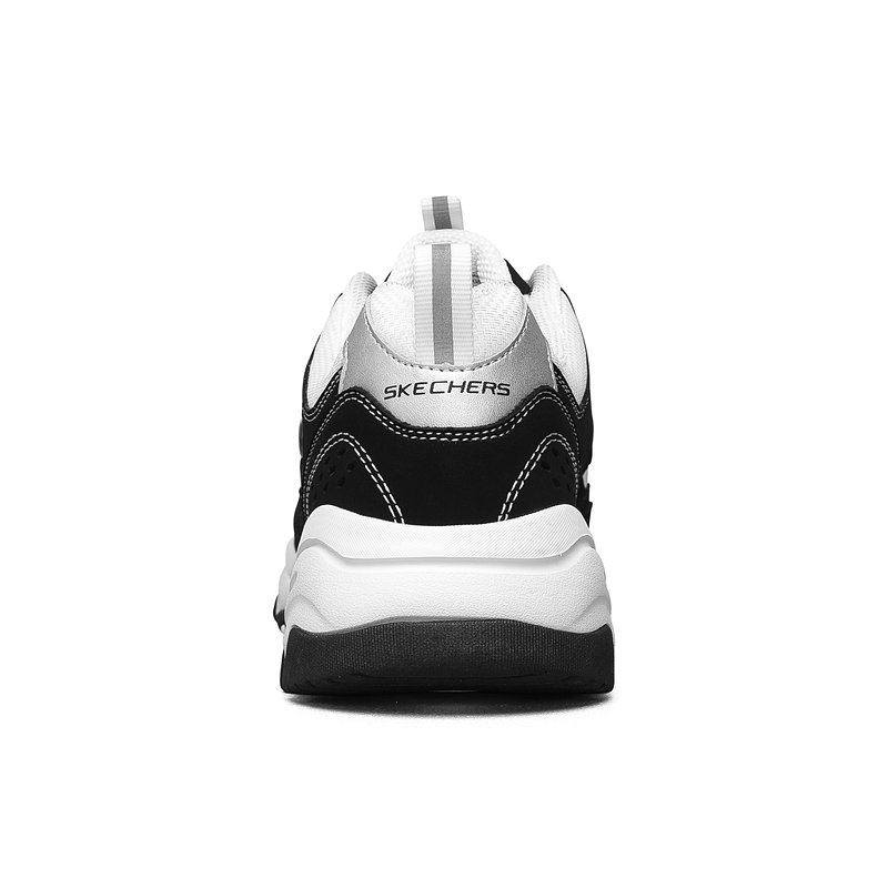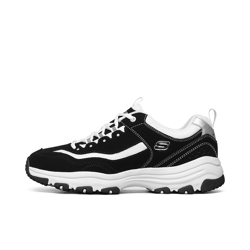 Skechers 斯凯奇 fw-88888250 男女运动鞋,流畅的拼接线条,复古中透露出动感活力,细致缝线凸显品质感。后跟银色点缀,散发金属光泽质感,更显炫酷时尚。EVA/橡胶材质+多沟槽设计,轻便耐磨,抓地力增加,适应运动休闲多种场景穿着。