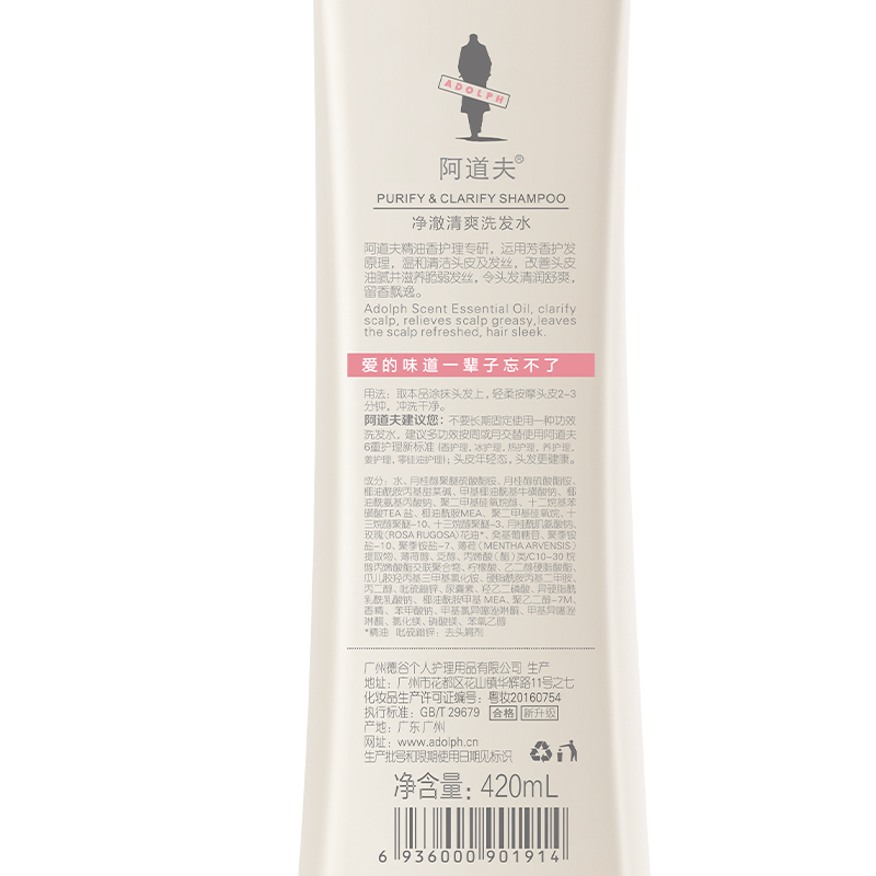 阿道夫推出的这款净澈清爽洗发水,采用香氛护发原理,洗后留香飘逸。弱酸性平衡护理,改善头皮碱性环境,清爽控油;温和修护干燥、枯黄等受损发质,令秀发顺滑易梳,丰盈蓬松。建议与同款护发素搭配使用,保质期为3年。