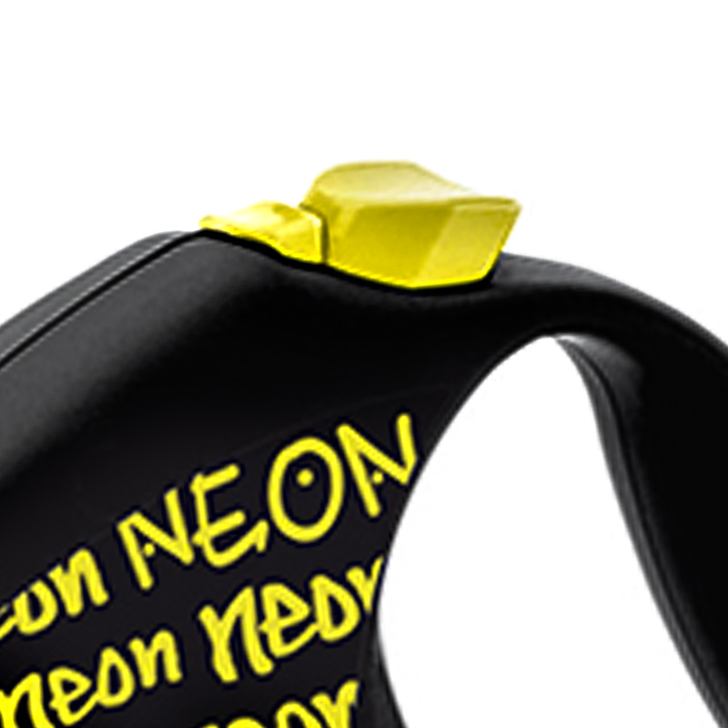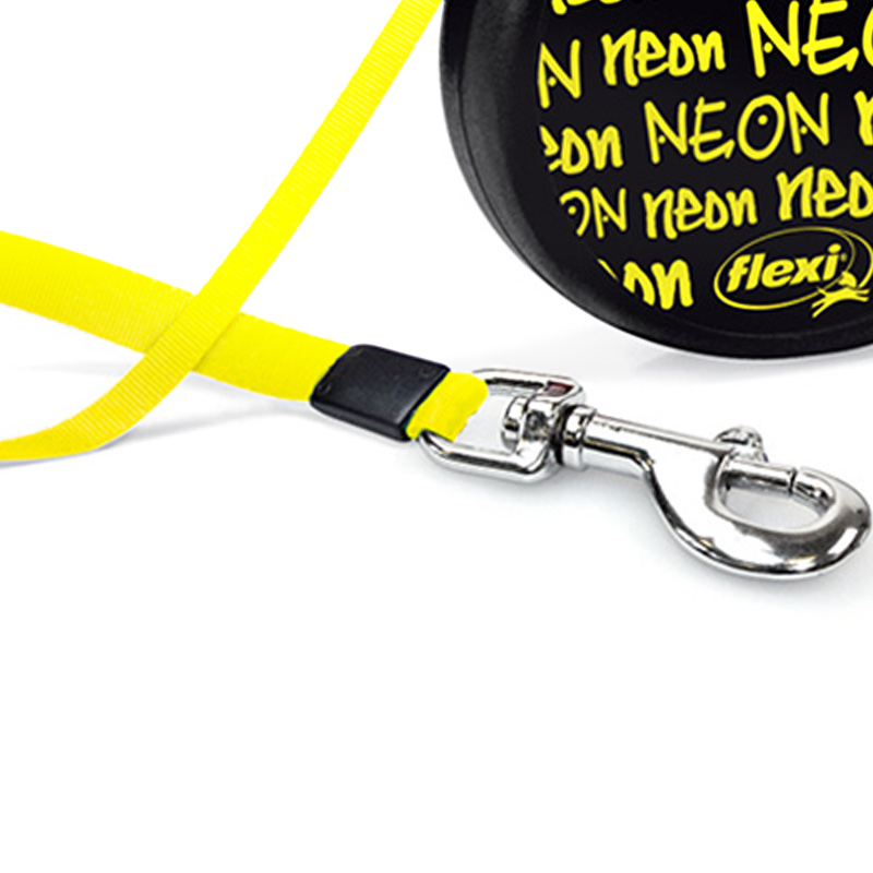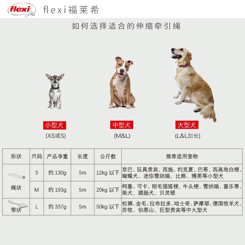 高抗拉力的绳带,给予更多安全感,荧光黄色的宽带,夜晚也能看得见。可单手使用的制动按钮,操作方便简单,符合人体工程学的舒适握把,手感不错,握着不勒。不同型号适用于不同犬型,产品不包含项圈和胸背带,需另外购买。
