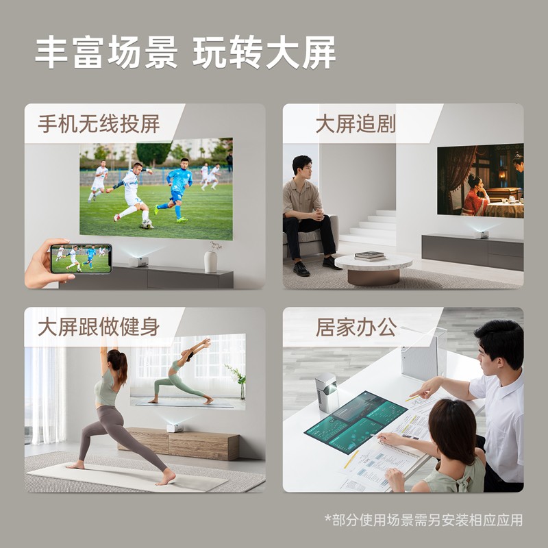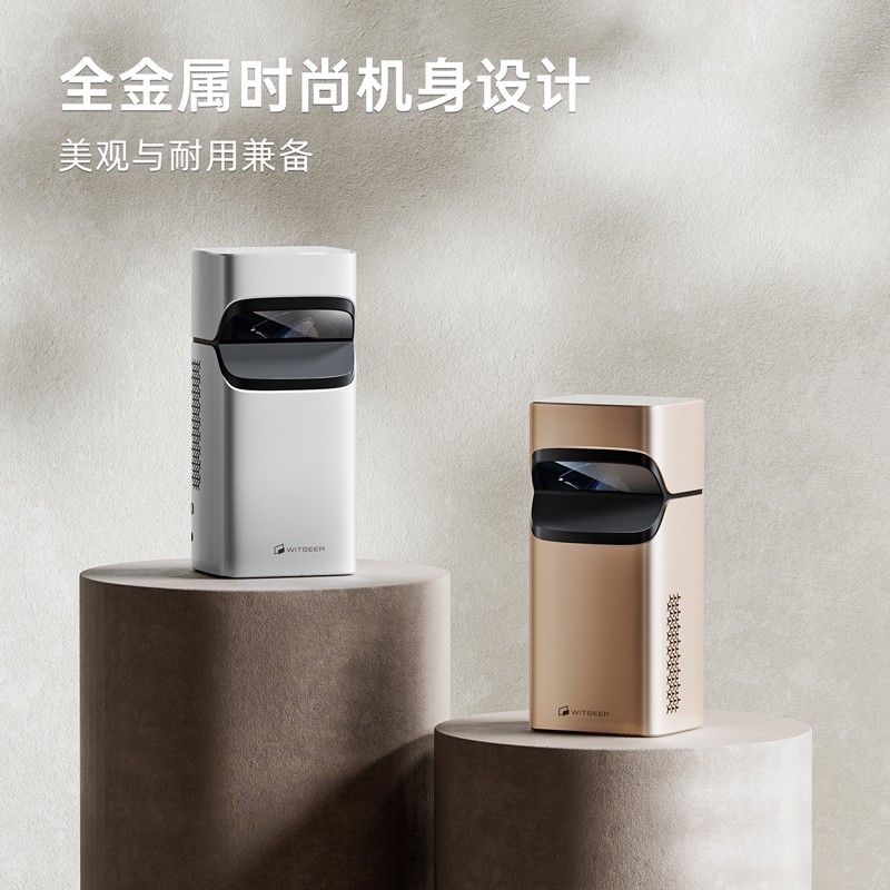 外观上选用川型阳极氧化铝,金属光泽流溢,在美观和耐用之间比普通阳极氧化铝更耐划伤,家用赏心悦目、外出便携坚固耐用。拥有万元级电视同款芯片,行业高配AI芯片,充分发挥画质算法效果;电动无损光学对焦,调整焦距这种小事,动动手指就好;支持四点梯形校正,四维敏捷,怎么放画面都好看。