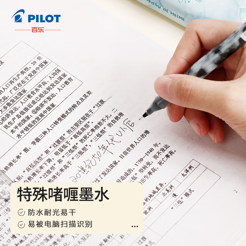 提到中性笔,不得不提百乐P500,作为广受欢迎的“网红”中性笔,P500可谓名符其实。外观低调耐看,笔尖部分采用三点承托,轻度的摔落,对书写体验不会造成太大的影响。笔写起来十分顺滑,出墨均匀,不会洇纸,各种纸张上表现良好,笔墨防水。比起同等粗细笔芯,笔触来得更细,是细笔控的福音。黑、蓝、红、绿、紫5色可选。注意P500为一次性笔,不可更换替芯。