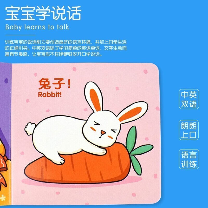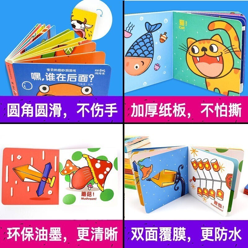 宝宝一岁左右的时候,小手抠东西、戳河洞,会对周围的小物件充满兴趣,总结为“细微事物敏感期”。训练宝宝的说话能力要创造良好的语言环境,井加上日常生活的正确引导。中英双语除了学习简单的英语单词,文字生动而富有节奏感,让宝宝忍不住呷呷呀呀开口学说话。洞洞设计的怡到好处,既能看到下一页东西的特征,又留有定的想象空间。书籍小巧,正适合0-3岁的宝宝手掌大小,宝宝自己翻阅起来游刃有余。纸质图书很容易被宝宝破坏,而这套纸板书咬不怀、撕不烂,贴心的圆角设计,保护宝宝不受伤害,为宝宝的优质阅读,提供了良心信心保证。