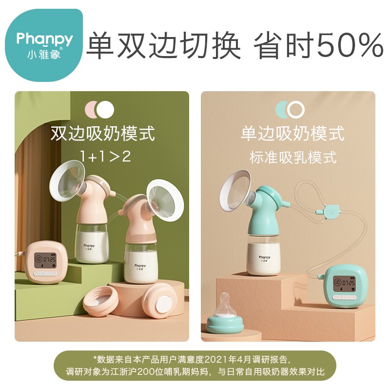 小雅象(Phanpy)推出的这款双边电动吸奶器,主机设有变频刺激泌乳和高频吸乳两种模式,10档频率可供调节,帮助舒适泌乳,吸乳顺畅。内置防逆流装置,防止奶水回流造成二次污染;2200mAH锂电池充电,续航持久。马达低音运行,不干扰宝宝睡眠。
