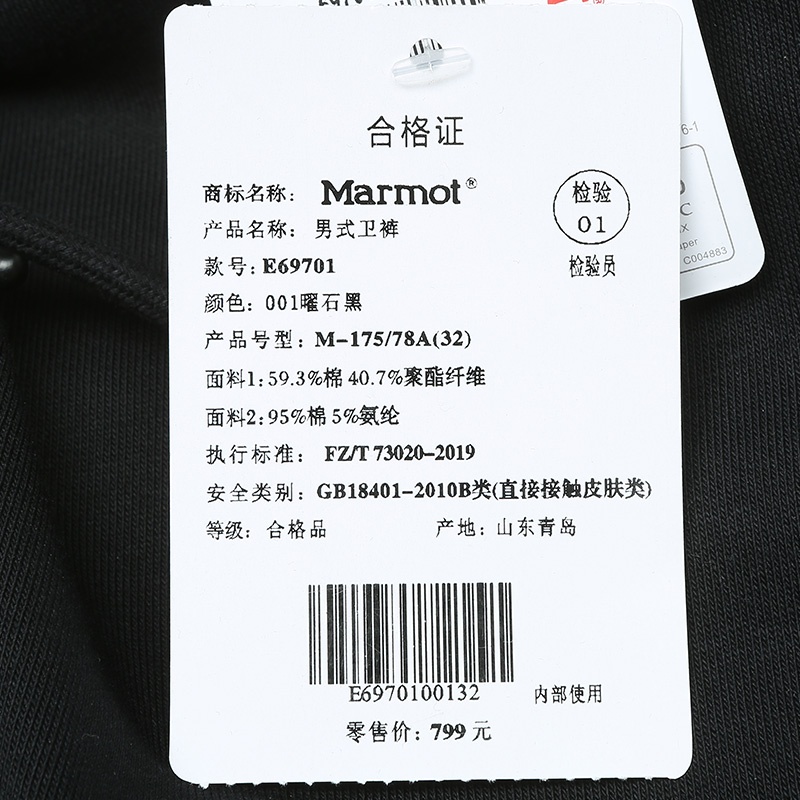 Marmot 土拨鼠 男款运动长裤 E69701 简洁利落的流畅设计打造随性休闲范,彰显年轻人不拘一格的时尚个性,解锁多元穿搭,弹力松紧腰身,缔造自在贴合度。