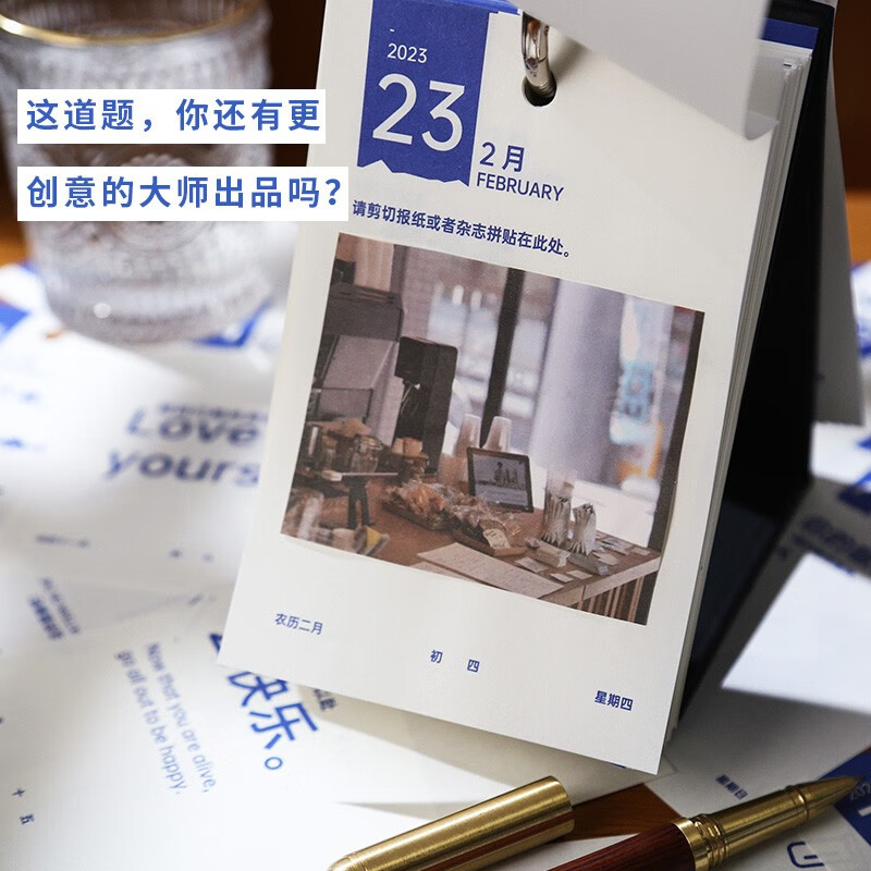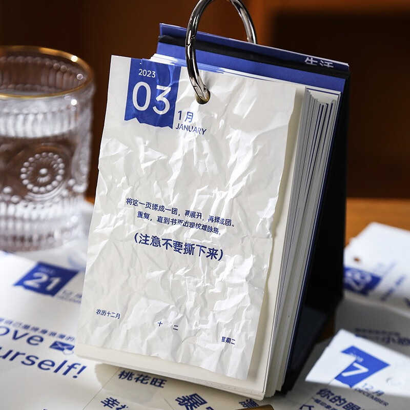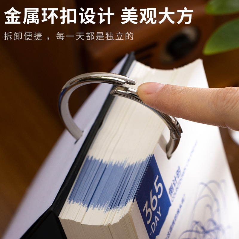 这是一款以“玩”为主题的创意生活解压日历,整本除了有日期月份基本信息外,最特别的点是每日一个不同的解压小主题;大圆环开合扣,翻页流畅不损纸,单本盒装,方便收藏,巧妙翻页设计,构成三角稳固站立。