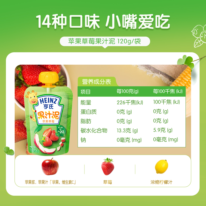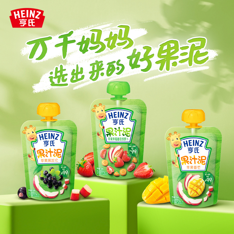 Heinz亨氏乐维滋果汁泥,天然果汁加果泥的搭配有助于宝宝胃肠运动,而且易于消化吸收。苹果香芒口味,能够更好的补充博爱博爱成长所需要的维生素,不添加防腐剂、色素和人造香料。120g立袋式小包装,方便携带食用,适合1岁以上的宝宝食用。