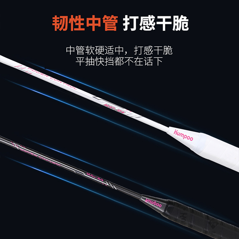 超轻科技,手感更轻盈,优异的碳素纤维材质将球拍重量控制在82g左右,球拍轻盈好上手,更轻松挥拍击球。盒式断面结构结合76孔穿线,提高击球时的稳定性和抗扭力。中管软硬适中,打感干脆,平抽快挡都不在话下。