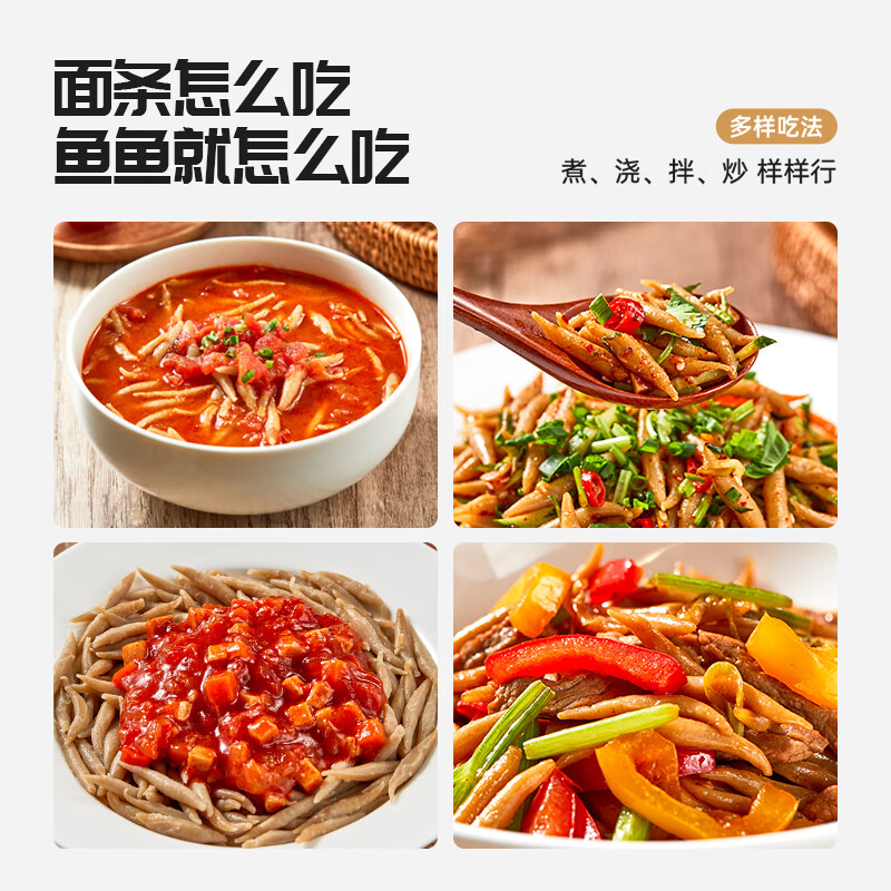 食用方法:锅中加水煮沸,倒入莜面鱼鱼,煮3~5分钟后捞出沥水备用,后续可根据个人喜好,搭配其他食材翻炒享用或者是调制好酱汁,拌匀享用。