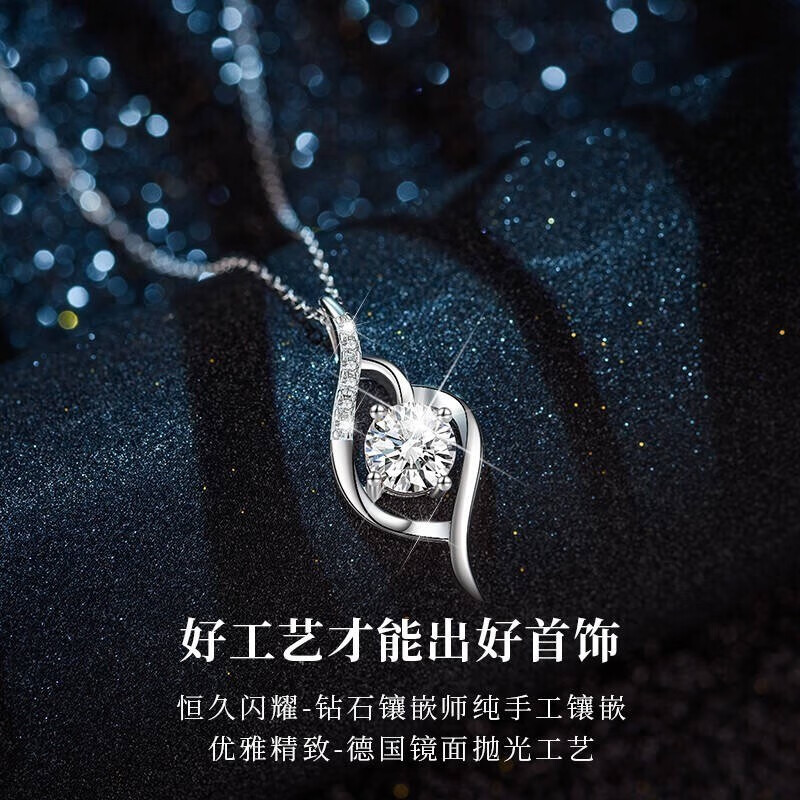 蒂瑞珂 女士莫桑钻项链 一克拉,此款莫桑石项链高折射率,比钻石火彩更绚烂,比一般宝石更璀璨。加厚电镀,持久保色工艺,细密抛光。国际标准925银,比普通银拥有更佳的硬度,不易氧化不易过敏。