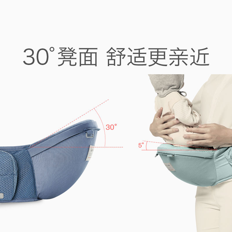 BabyCare公司于1998年进入中国,腰凳、背带是其主打产品,腰凳是宝爸宝妈带娃过程中的的得利神器,宝宝身体正处于发育时期,选择一款合适的腰凳十分重要,劣质背凳未考虑人体工学设计,使用中会影响骨骼发育,baby婴儿腰凳采用骨科医生推荐的凳面轮廓弧度,保护宝宝脊椎和髋部,选用Medical硅胶减震凳面,多维支撑,防滑护脊,15mm减震防滑凳面,减轻宝宝臀部晃动和位移,分散大人行走的骨震动,给宝宝更安逸舒适的坐感。腰凳加大凳面,且带斜度的凳面,宝宝的体重可以使凳面接近5°,让宝宝自然贴合爸妈身体,更有安全感。前置大容量储物包,方便存放日常物品。很多家长不知道什么时候用腰凳,宝宝可以独立坐着的时候就可以使用了,但不建议一次性使用时间太长,避免对宝宝脊椎产生压迫。