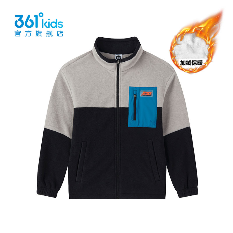 361° 儿童针织摇粒绒外套,温暖不设限,双刷双摇材质,保暖性up。舒适立领设计,锁住温暖,宽松版型,包容不束缚,袖口、下摆弹力抽绳。