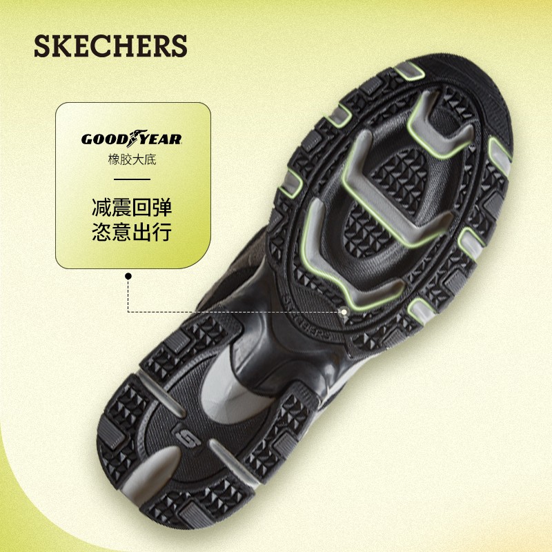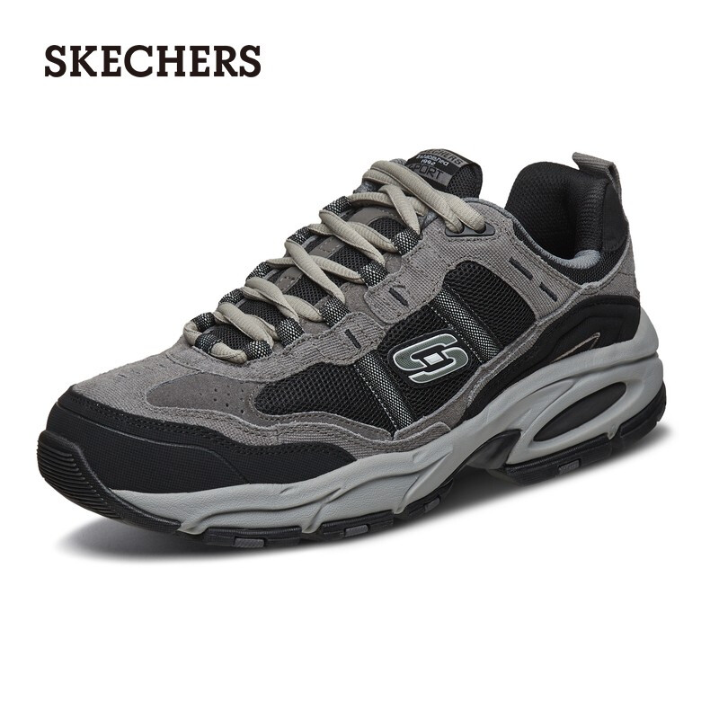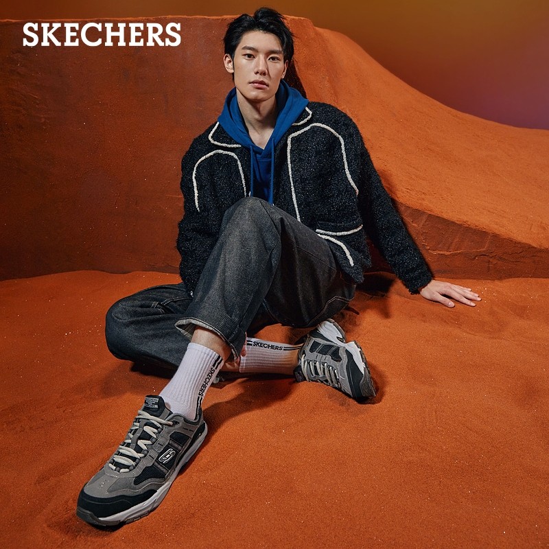 SKECHERS(斯凯奇)是美国著名的休闲鞋品牌,由Robert Greenberg创立于1992年,其明星产品鞋款包括GO WALK3系列、MARK NASON系列、D'LITES系列等。这款运动鞋,复古户外分风格,皮革、织物拼接鞋面,粗犷造型大底。
