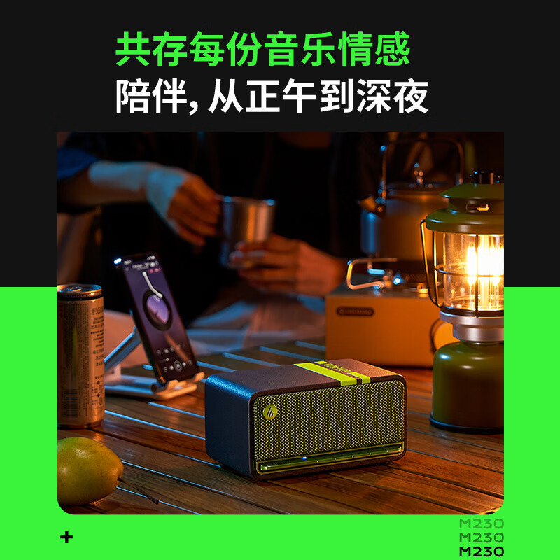 漫步者M230,高品质复古蓝牙便携音箱,一体式立体音响,采用蓝牙5.0,续航约9小时,采用USB一线通,AUX输入,同时还支持读卡播放,印花采用立体印刷工艺,附着在脉络分明的柔软皮革上是有序中的无序,是共性里的个性,琴键式按键设计,采用高信噪比功放芯片,支持高达23W×2的功率输出,推动整机10W+10W连续不失真功率。双单元声学系统,由两个48mm全频单元构成的立体声声学系统,内置2节2600mAh大容量聚合物锂电池,音箱尺寸为163.9*85.2*108.2mm。