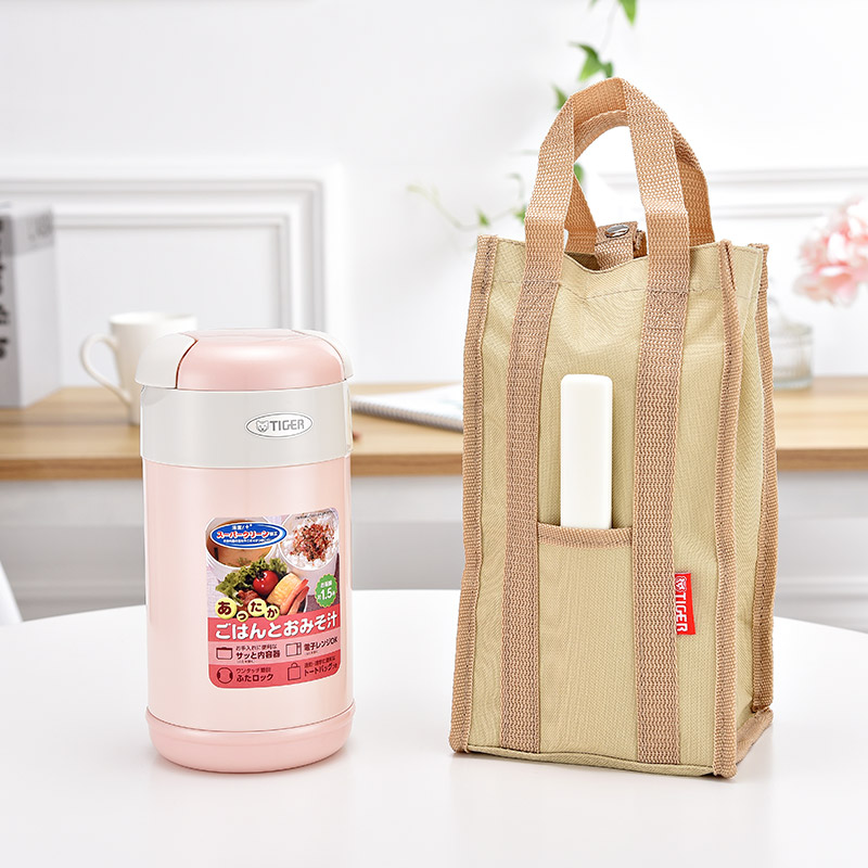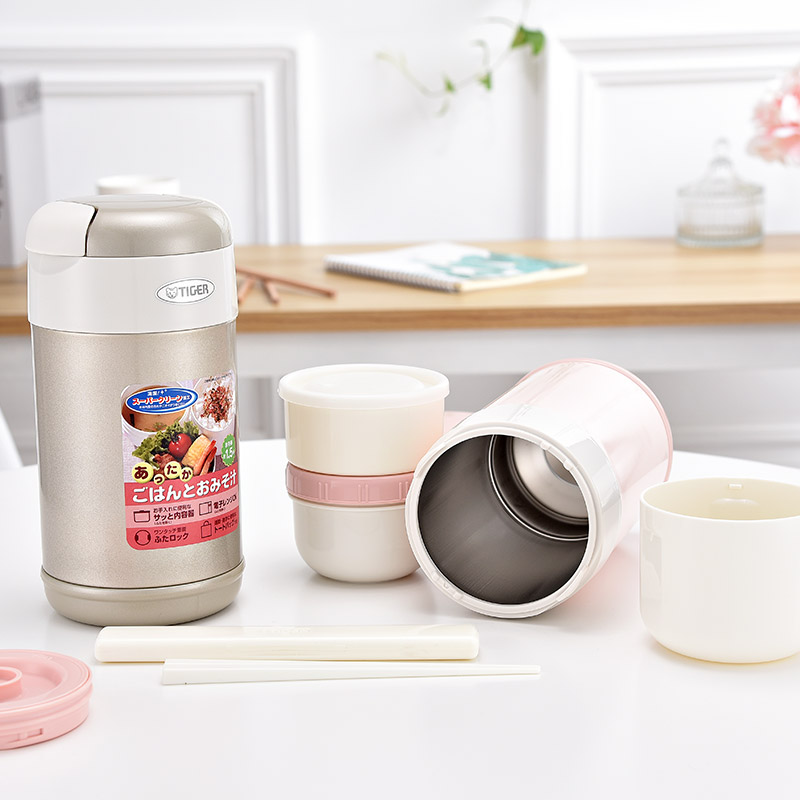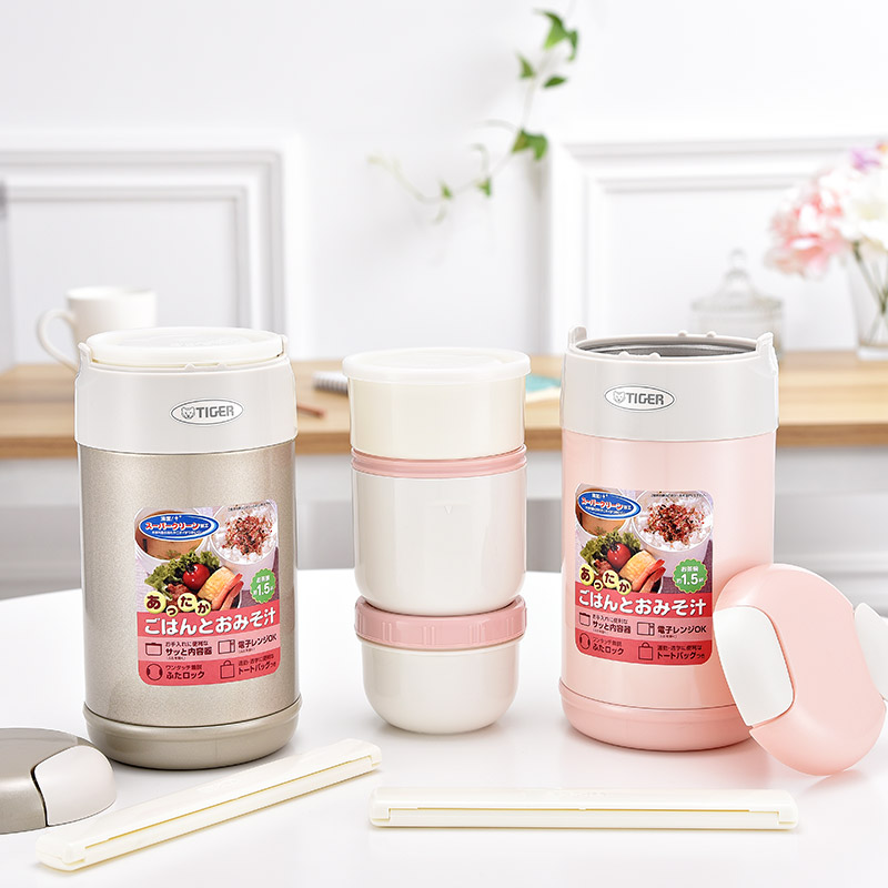 此款虎牌不锈钢保温饭盒,容量920ml,包含菜盒、饭盒和汤盒三层容器,一体式保温,满足日常带饭需求;盒体采用的是双层304不锈钢材质,健康环保,长效保温;盒盖是扣环式设计,使用方便更易于携带;同时附赠便携筷子盒收纳手提袋,一盒多用,平时上班带饭、户外郊游等场景均可携带。
